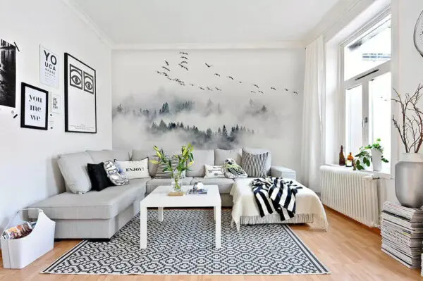 Fototapeten Weißer und grauer Hintergrund mit weißen Linien
