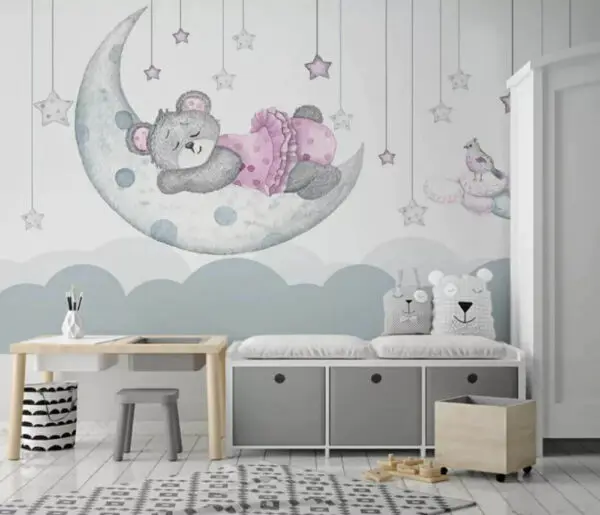 Fototapeten Cartoon eines schlafenden Fuchses auf dem Mond