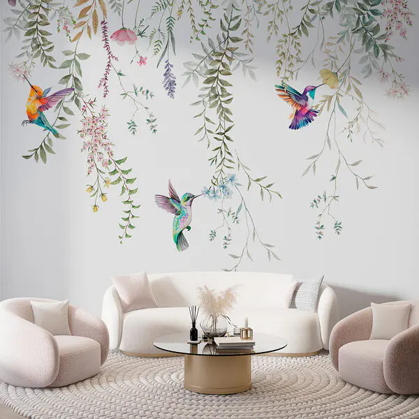 Fototapeten Kolibris inmitten von üppigem Blattwerk Illustration