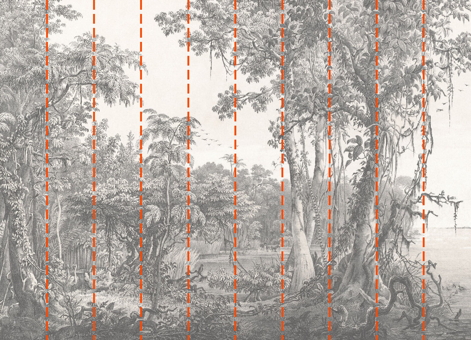 Fototapeten Grüne Blätter mit verschlungenen Linienmustern