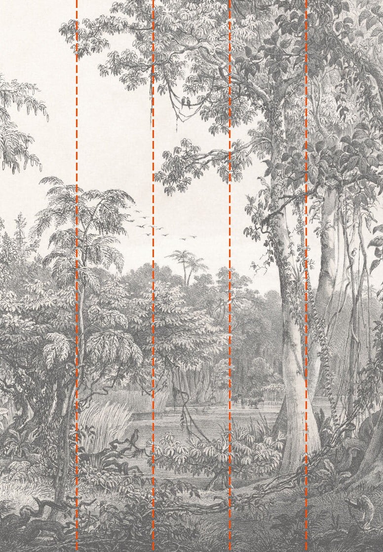 Fototapeten Aquarell von Dinosauriern und Pflanzen