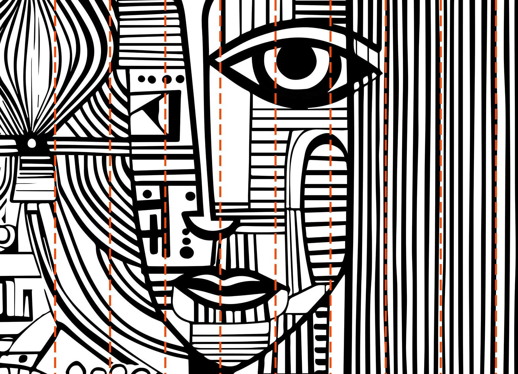 Fototapeten Schwarz-weiße Zeichnung eines Frauengesichts