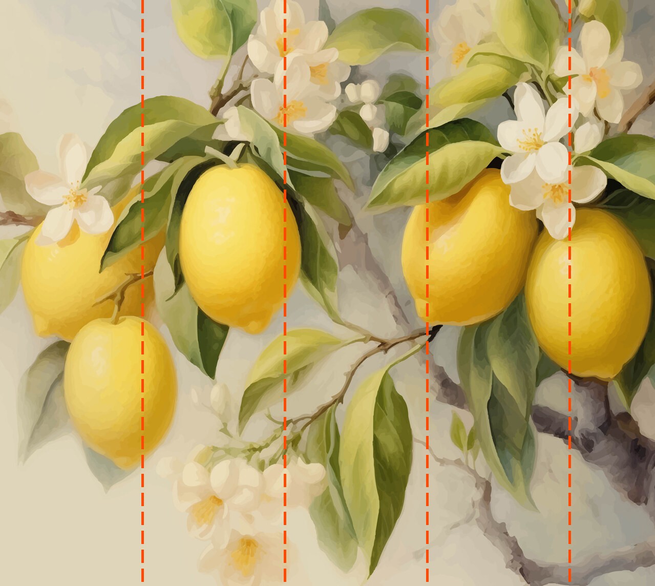 Fototapeten Gemälde von Zitronen auf einem Baum