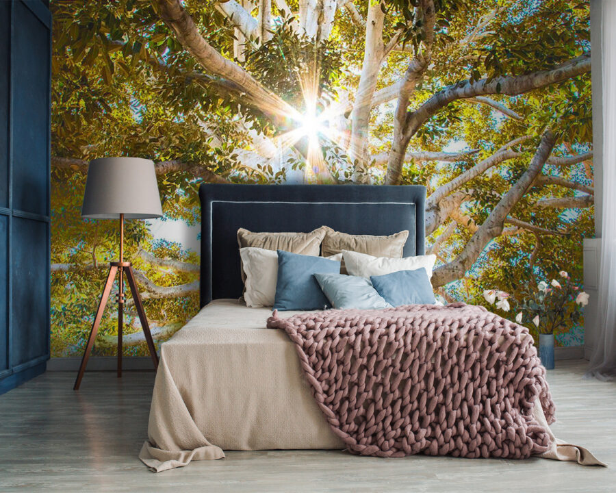Jedes Mal, wenn jemand hereinkommt, hält er vielleicht inne, atmet tief durch und lächelt, während er sich einen entspannten Nachmittag unter dem ausladenden Blätterdach vorstellt. Die tiefen Wurzeln erinnern uns an Stabilität, während die Äste sich wie eine herzliche Begrüßung ausstrecken. Es erinnert uns daran, dass manchmal ein bisschen Natur ausreicht, um unsere Stimmung zu heben und Frieden zu schaffen. Diese Wandtapete eignet sich perfekt für eine gemütliche Leseecke oder sogar ein lebhaftes Wohnzimmer und verbreitet Freude.