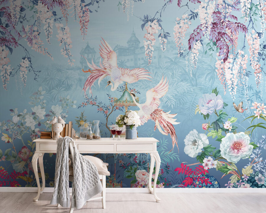 Mit dem Wandbild “Elegante Vögel inmitten blühender Flora” verwandeln Sie jeden Raum in eine heitere Oase. Stellen Sie sich das vor: lebhafte Blumen in sanften Farben, zwei anmutige Vögel, die im Mittelpunkt stehen, und ein Hauch von Laune, der selbst die strengsten Wände zum Lächeln bringen könnte. Es ist, als ob man sich einen friedlichen Garten ins Haus holt, in dem man tagträumen oder in Einsamkeit einen Tee schlürfen kann. Stellen Sie sich vor, wie es einen Wohnraum erhellt oder eine gemütliche Leseecke in ein verwunschenes Refugium verwandelt. Diese Fototapete ist nicht nur Dekoration, sondern eine Einladung zum Innehalten, zum Bewundern und zum Versinken in der Schönheit der Natur – und das alles, ohne dass die Gäste die Augen verdrehen. Wer hätte gedacht, dass Wände so einladend sein können?