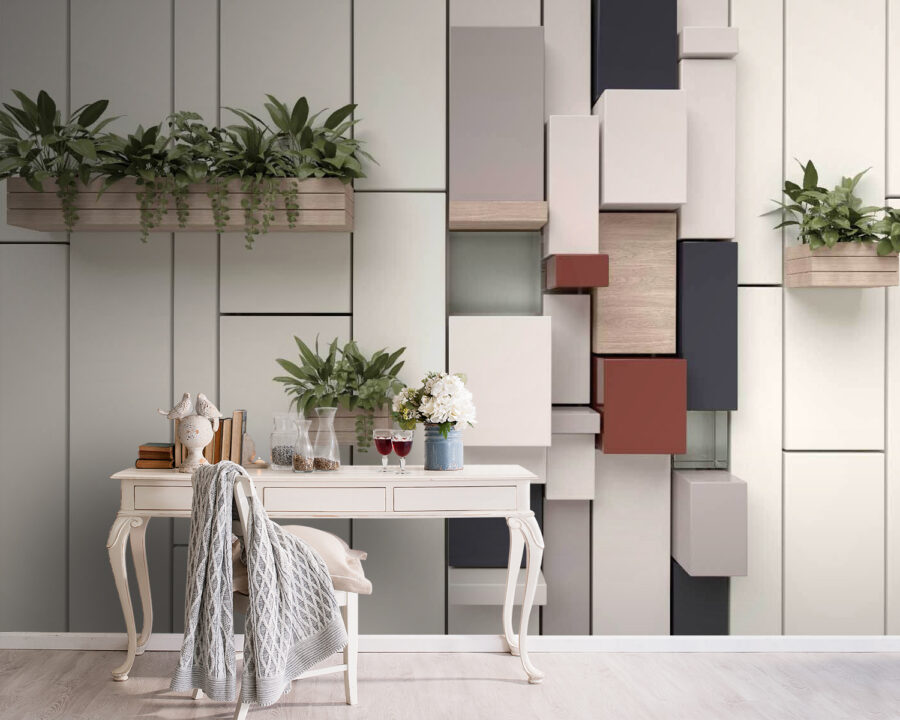 Verwandeln Sie Ihren Raum mit dieser lebendigen Wandtapete „Wand mit Pflanzen und Kisten“. Sie verbindet auf perfekte Weise moderne geometrische Formen mit üppigem Grün und schafft so eine verspielte und dennoch raffinierte Atmosphäre. Stellen Sie sich diese Tapete in Ihrem Wohnzimmer vor – jeder Blick darauf fühlt sich wie ein erfrischender Hauch frischer Luft an. Es ist, als hätten Sie einen kleinen Garten, der nie gegossen werden muss. Außerdem sorgen die sanften Farbtöne für eine luftige Atmosphäre und erhellen jede triste Wand. Ob sie nun die Kreativität am Montag anregt oder einfach nur die Kaffeepausen ein wenig ruhiger macht, diese Tapete hat den Charme, Ihre Einrichtung aufzuwerten. Wer hätte gedacht, dass eine Tapete so einladend sein kann?