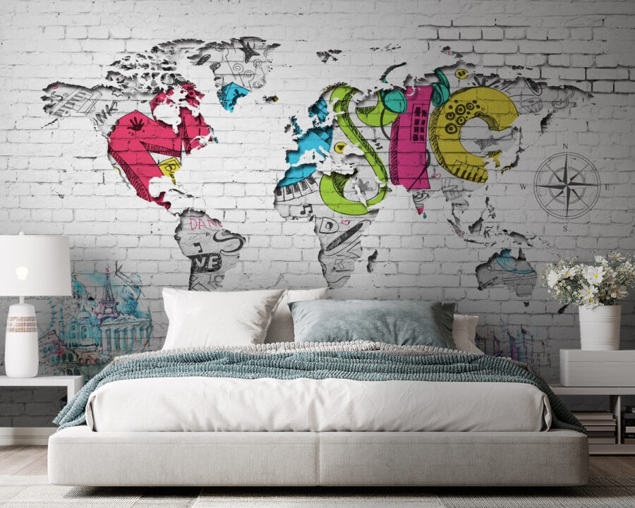 Verwandeln Sie Ihren Raum in ein Abenteuer mit dieser skurrilen Fototapete mit kühnen, farbenfrohen Motiven auf einem klassischen Backsteinhintergrund. Stellen Sie sich vor, Sie betreten einen Raum, der voller Geschichten aus der ganzen Welt steckt – jeder Farbtupfer erzählt seine eigene Geschichte. Das ist nicht nur Dekoration, sondern eine Einladung zum Tagträumen. Perfekt für eine junge Frau, die gerne reist, oder für jeden, der gerne einen Spritzer Kreativität in seinem Leben hat. Zusammen mit ein paar Topfpflanzen entsteht ein gemütliches Plätzchen, das Freude und vielleicht sogar ein wenig Fernweh weckt. Es geht darum, Erinnerungen zu schaffen – so wie die auf diesem Wandbild, das Sie jeden Tag aufs Neue inspirieren wird!