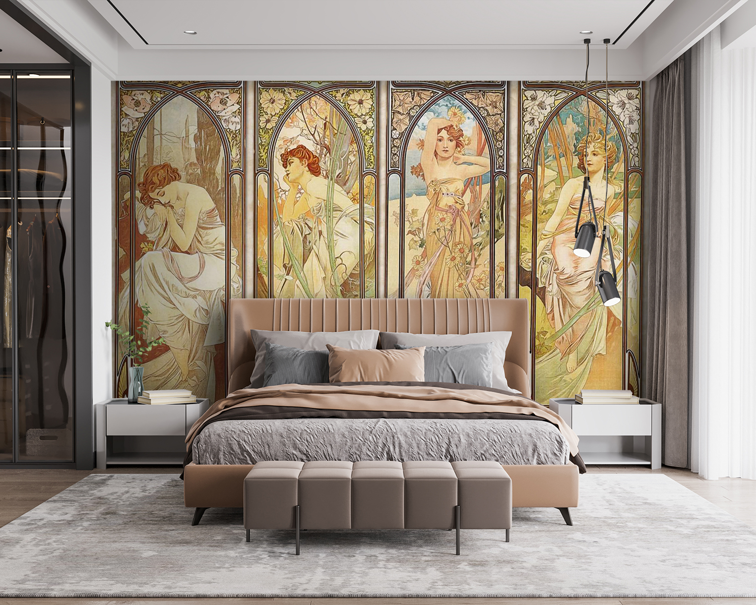 Verwandeln Sie Ihren Raum mit dieser bezaubernden Wandtapete, die eine charmante Gruppe von Frauen im Jugendstil zeigt. Stellen Sie sich vor, Sie wachen auf und fühlen sich wie in einem skurrilen Traum, in dem fließende Linien und lebendige Farben über Ihre Wände tanzen. Jede Frau erzählt eine Geschichte, versunken in Gedanken oder die Natur feiernd. Es ist, als würden sie Sie in ihre Welt einladen, sobald Sie den Raum betreten. Diese Tapete eignet sich perfekt für eine gemütliche Leseecke oder als künstlerisches Herzstück und zieht Sie in ihren Bann, sodass Sie das Gefühl haben, die Kunst würde lebendig werden. Und wer würde sich nicht über eine tägliche Dosis Schönheit freuen? Stellen Sie vielleicht einen bequemen Sessel und ein gutes Buch dazu und genießen Sie einfach diese magische Atmosphäre. Glauben Sie mir, sie verwandelt jeden Raum in einen kleinen Rückzugsort.