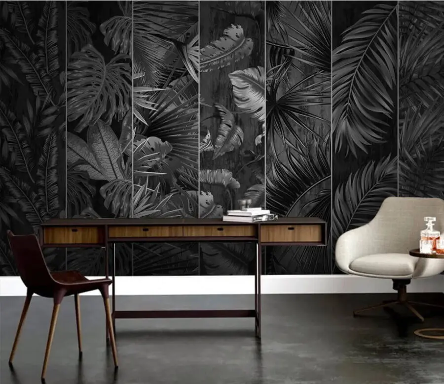 Transform any space with this stunning black and white wall mural that brings the beauty of nature indoors without the maintenance. Imagine stepping into a room where leaves in bold monochrome dance across the wall, creating an atmosphere that feels both serene and alive. It’s like having a mini tropical paradise right in your living room—minus the humidity! Perfect for those who thrive on a touch of the exotic, this mural can effortlessly elevate your decor game. Pair it with some cozy seating, and you’ve got the ideal hangout spot. Guests are sure to comment on its unique vibe, making it a conversation starter. Seriously, the way the leaves flow together, it’s like nature’s own artwork—artistic yet relaxing. Whether you’re a nature lover or just want to spice up your space, this mural is a win-win. Plus, who wouldn’t want to feel like they’re in an upscale jungle retreat every day?