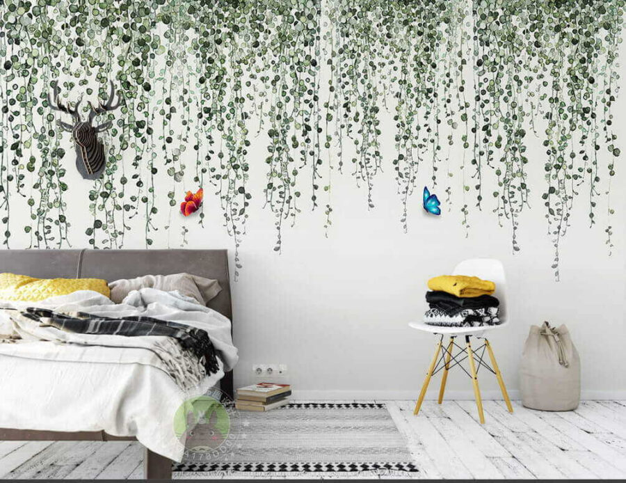 Stellen Sie sich vor, Sie betreten einen Raum, der von der Natur umgeben ist – diese Tapete lässt diesen Traum wahr werden! Mit zarten Ranken, die sich herabfallen, und bunten Schmetterlingen verwandelt sie langweilige Wände in einen lebendigen Rückzugsort. Stellen Sie sich vor, Sie lehnen sich mit einer Tasse Kaffee zurück und tauchen vollständig in die Farben und die ruhige Atmosphäre ein. Die dezenten Grüntöne wirken beruhigend, während die verspielten Schmetterlinge im Licht tanzen. Es ist, als hätten Sie einen privaten Garten in Ihrem Zuhause! Diese Tapete eignet sich perfekt für eine gemütliche Ecke oder sogar ein lebhaftes Spielzimmer und verleiht jedem Raum einen Hauch von Fantasie, den jeder liebt. Es ist doch immer schön, wenn ein wenig Magie in der Luft liegt, finden Sie nicht auch?