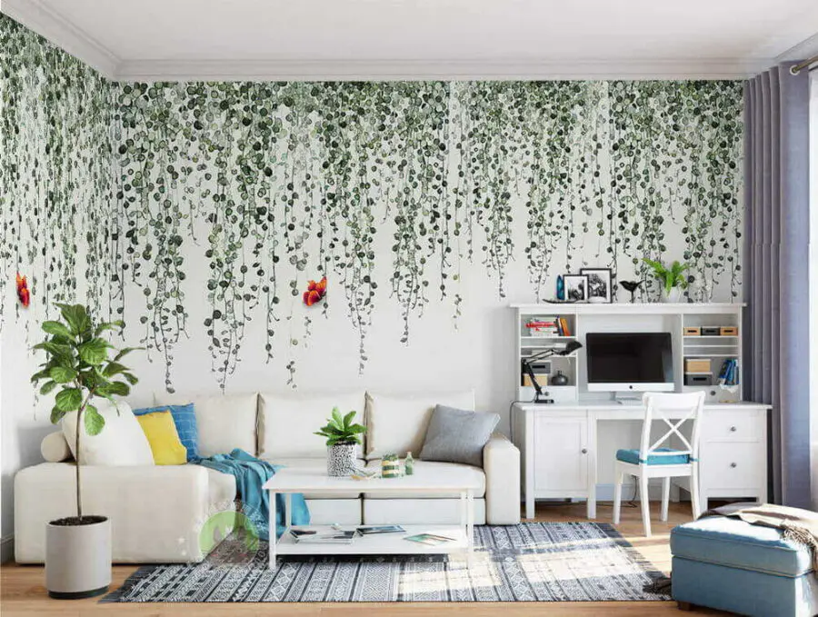 Imagine stepping into a room wrapped in nature’s embrace—this mural brings that dream to life! Featuring delicate vines cascading down with splashes of vibrant butterflies, it transforms dull walls into a lively escape. Picture lounging back with a cup of coffee, completely immersed in the colors and serene vibe. The subtle greens can soothe any day, while those playful butterflies dance in the light. It’s like having a private garden in your space! Perfect for a cozy nook or even a lively playroom, this mural adds that touch of whimsy everyone loves. It’s always nice to have a little magic fluttering around, don’t you think?