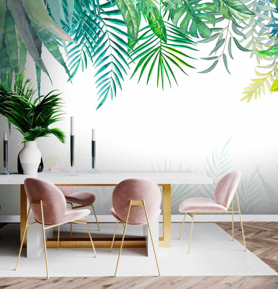 Verwandeln Sie Ihren Raum mit dieser atemberaubenden Wandtapete „Gruppe von Blättern auf weißem Hintergrund” in ein tropisches Paradies. Stellen Sie sich vor, Sie wachen auf und sehen ein üppiges Blätterdach, das Ihren Wänden süße Nichtigkeiten zuflüstert. Es ist, als würden Sie einen Hauch von Regenwald in Ihr Zuhause holen – ohne die Feuchtigkeit! Jedes Blatt tanzt mit seiner eigenen Persönlichkeit und schafft eine frische Atmosphäre, die sowohl entspannend als auch belebend wirkt und sich perfekt für eine gemütliche Leseecke oder einen lebhaften Wohnbereich eignet. Außerdem ist es ein fantastischer Gesprächsaufhänger. „Oh, wo hast du das her?“ Freunde werden nicht einfach vorbeigehen – sie werden zweimal hinschauen!