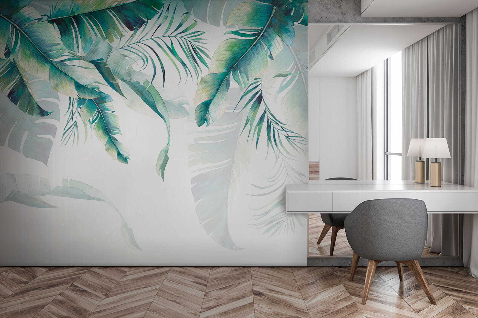 Stellen Sie sich Folgendes vor: Sie betreten einen Raum und werden in ein üppiges, tropisches Paradies versetzt. Dieser “Fototapeten Tropical Leaves”-Druck ist schlichtweg faszinierend. Es ist, als hätte Mutter Natur selbst einen Aquarellpinsel in die Hand genommen und sich an die Arbeit gemacht. Die leuchtenden Grüntöne und die sanften Blautöne der Blätter strahlen Entspannung aus – perfekt für jeden Raum, der einen ruhigen Touch braucht.