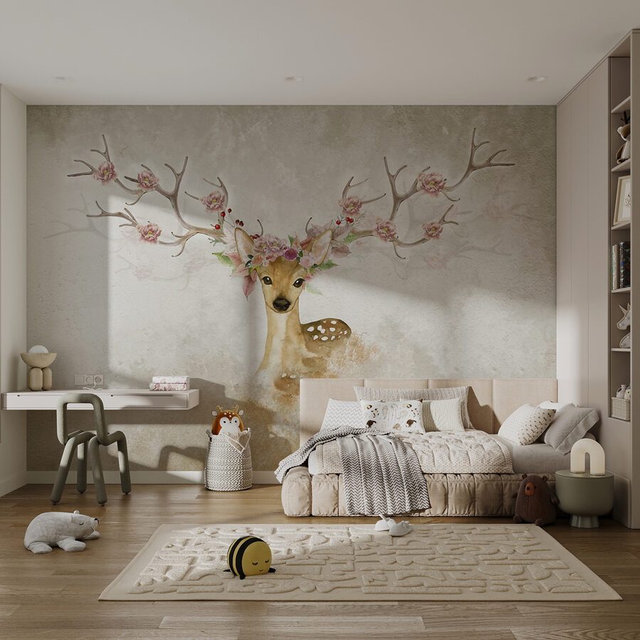 3 Rezensionen für Fototapeten Aquarell eines Rehs mit Blumen auf dem Kopf