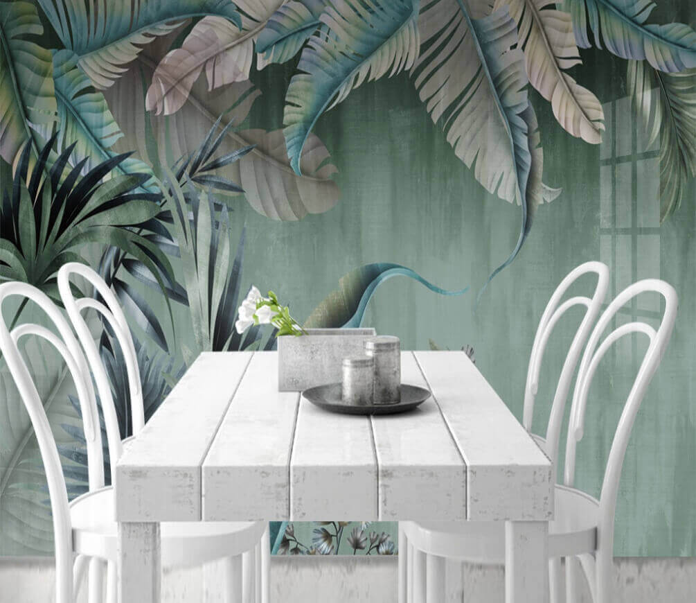 Verwandeln Sie Ihre Wände mit der Fototapete „Lush Leaves in Calming Tones” in einen tropischen Rückzugsort. Stellen Sie sich vor, Sie betreten jedes Mal, wenn Sie den Raum betreten, einen ruhigen Wald – ohne Insekten! Die Mischung aus beruhigenden Grüntönen und dezenten Blautönen schafft einen beruhigenden Hintergrund, der sich wie eine sanfte Umarmung anfühlt. Haben Sie eine gemütliche Leseecke? Perfekt. Stellen Sie sich vor, Sie machen es sich mit einem Buch gemütlich, umgeben von diesen lebendigen Blättern, und fühlen sich meilenweit entfernt vom Stress. Es ist, als hätte die Natur beschlossen, in Ihren Wohnraum zu kommen und frische Luft und gute Stimmung mitzubringen. Ideal für alle, die bereit sind, in ihr kleines Paradies zu flüchten!