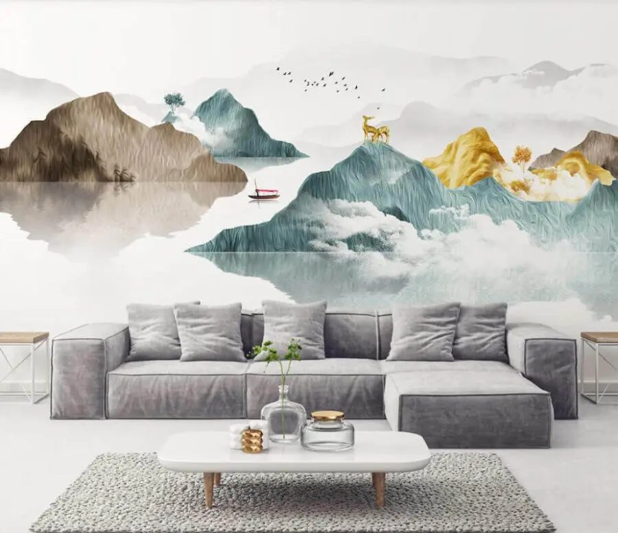 Stellen Sie sich vor: ein riesiges Wandbild an Ihrer Wand, das eine so ruhige Szene malt, dass Sie fast das sanfte Plätschern des Wassers im Kielwasser des einsamen Bootes hören können. “Mountain Serenity with a Lone Boat” lädt zum Entspannen ein – so als würden Sie von Ihrem Zimmer aus in eine ruhige, verträumte Landschaft eintauchen. Die Berge sind mit atemberaubenden Details dargestellt und erheben sich majestätisch mit weichen, gedämpften Farben, die mit dem nebligen Himmel zu verschmelzen scheinen. Und sehen Sie sich das Boot an, das einfach nur da liegt und einen Hauch von Fernweh vermittelt.