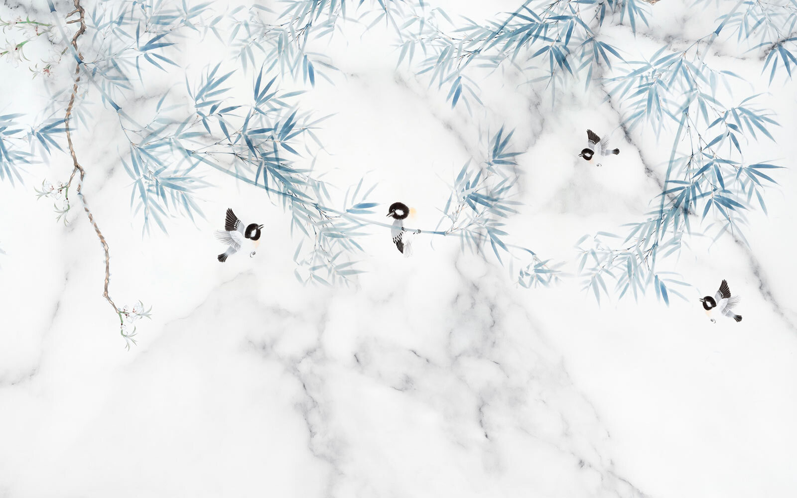 Stellen Sie sich vor, Sie betreten eine ruhige Oase direkt in Ihrem Wohnzimmer. Diese atemberaubende Wandtapete kombiniert einen weißen Marmorhintergrund mit zarten blauen Blättern und charmanten kleinen Vögeln. Es fühlt sich an, als würde die Natur direkt hinter Ihrer Wand Geheimnisse flüstern. Die sanften Farben strahlen Ruhe aus und eignen sich perfekt für eine gemütliche Leseecke oder sogar eine helle Küche. Stellen Sie sich vor, Sie trinken Kaffee, während diese verspielten Vögel um Sie herumflattern. Es ist wie eine wohltuende Flucht aus dem Alltagschaos – wer würde das nicht wollen? Verwandeln Sie Ihren Raum in eine Oase der Ruhe und lassen Sie sich täglich von der Schönheit der Natur inspirieren.