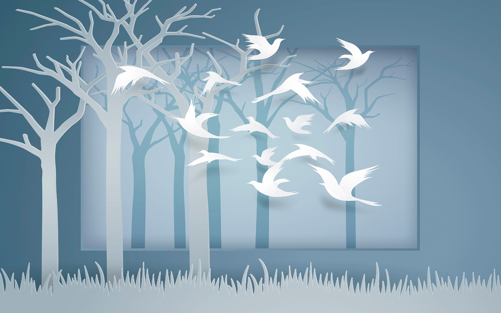 Verwandeln Sie Ihren Raum mit dieser atemberaubenden Wandtapete „Papierausschnitt von Vögeln, die durch die Luft fliegen”. Stellen Sie sich vor: eine ruhige Szene, in der elegante Vögel vor einem friedlichen Hintergrund fliegen. Es ist, als würde man eine sanfte Brise direkt in Ihr Wohnzimmer einladen. Perfekt für gemütliche Ecken oder eine Wand, die einen Hauch von Charme braucht.