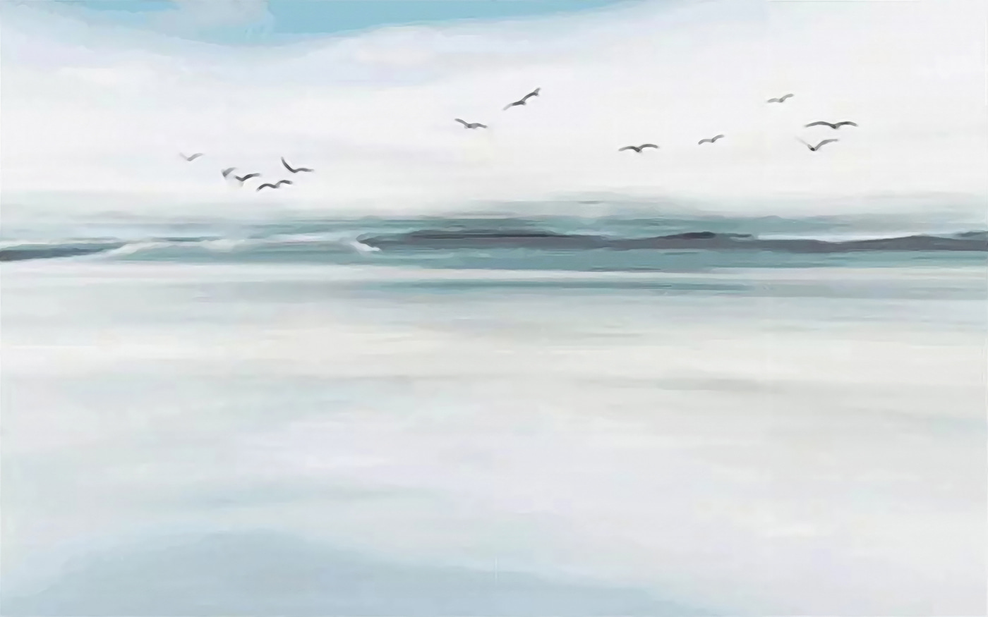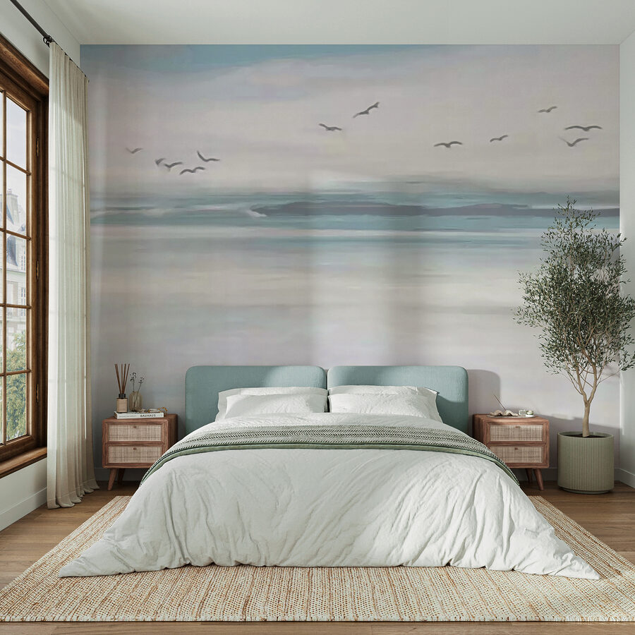 Stellen Sie sich vor, wie dieses verträumte Wandbild Ihren Raum verwandelt – wie ein sanftes Aquarell, das zum Leben erweckt wurde! Stellen Sie sich “Vögel, die über ein Gewässer fliegen” vor und füllen Sie Ihren Raum mit Gelassenheit. Es ist, als hätten Sie einen Rückzugsort am Meer zu Hause, ohne Sand in den Schuhen… oder Möwen, die Ihre Snacks stehlen!