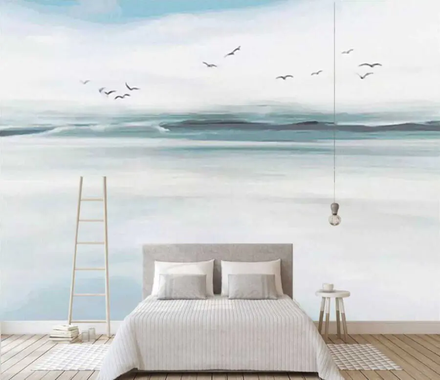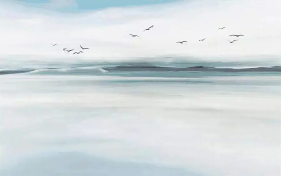 Stellen Sie sich vor, wie dieses verträumte Wandbild Ihren Raum verwandelt – wie ein sanftes Aquarell, das zum Leben erweckt wurde! Stellen Sie sich “Vögel, die über ein Gewässer fliegen” vor und füllen Sie Ihren Raum mit Gelassenheit. Es ist, als hätten Sie einen Rückzugsort am Meer zu Hause, ohne Sand in den Schuhen… oder Möwen, die Ihre Snacks stehlen!