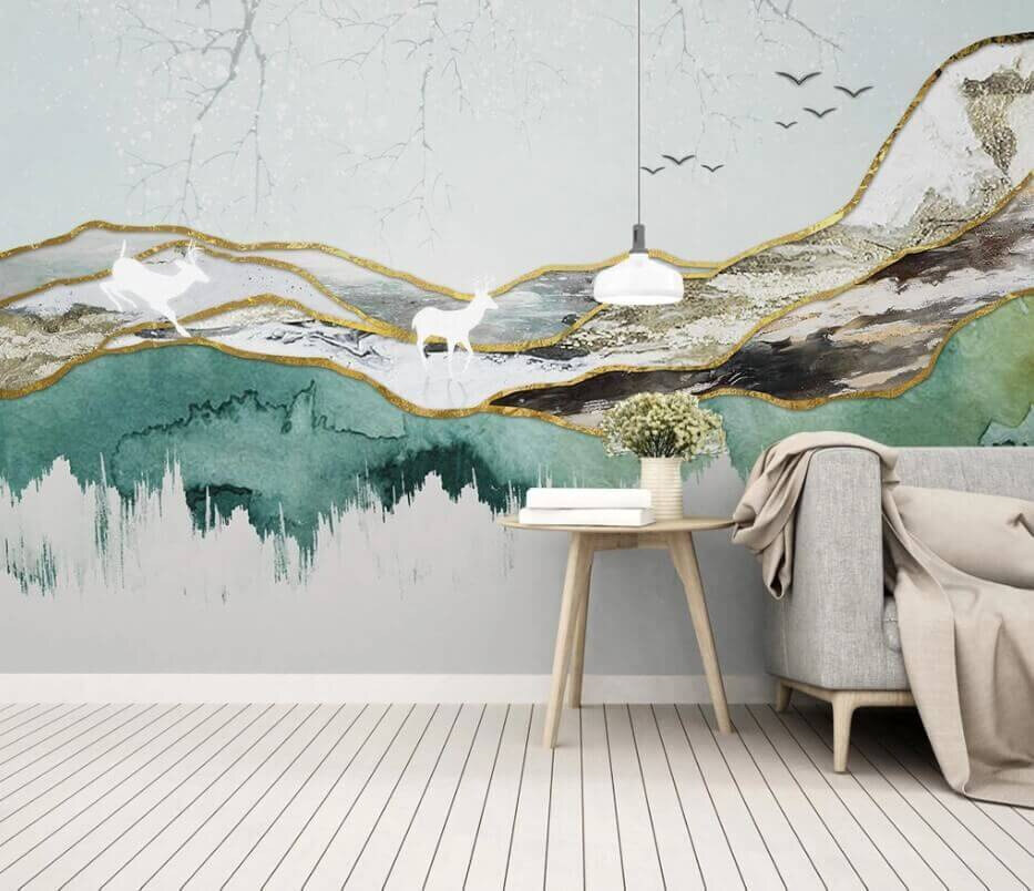 Stellen Sie sich vor, Sie betreten einen gemütlichen Raum, der mit diesem atemberaubenden Wandbild eines Hirsches und majestätischer Berge geschmückt ist. Es ist, als würde man ein Stück Natur ins Haus holen. Die ruhigen Farben und sanften Kurven der Landschaft strahlen eine natürliche Gelassenheit aus und eignen sich perfekt für eine Leseecke oder jeden anderen Ort, an dem man Ruhe schätzt. Stellen Sie sich vor, Sie empfangen Freunde und ihre Augen leuchten, als sie das kunstvolle Reh entdecken, das fast so aussieht, als würde es in den Raum hineinschauen. Diese Tapete ist nicht nur Dekoration, sondern eine kleine Flucht in die freie Natur, ohne Insekten. Ob Sie nun einen Hauch von Natur oder eine Prise Fantasie suchen, diese Tapete bietet Ihnen alles.