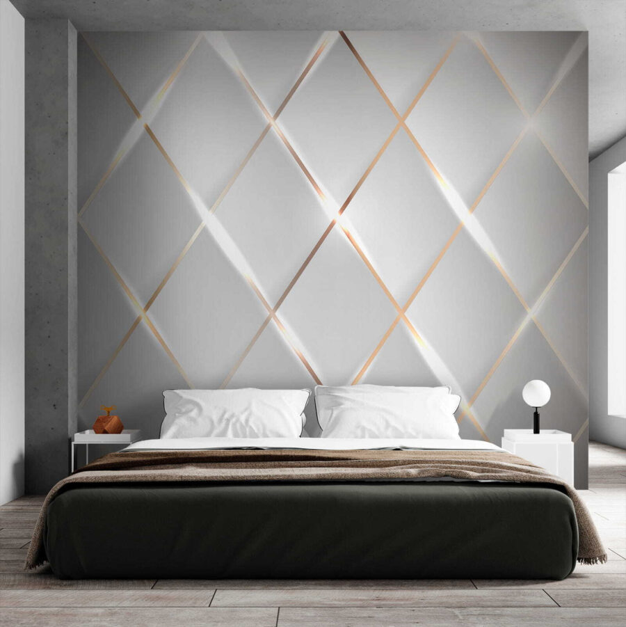 Verwandeln Sie Ihren Raum mit dieser aufsehenerregenden Fototapete “Fototapeten Shimmering Symmetrical Light Reflections”. Stellen Sie sich vor, Sie betreten einen Raum, in dem sich jeder Blick wie ein Tanz aus Licht und Schatten anfühlt – wie lustig ist das denn? Das geometrische Muster spielt mit Ihrer Vorstellungskraft und schafft ein Gefühl von Tiefe, das Sie in den Raum zieht. Es eignet sich perfekt für ein Wohnzimmer oder eine gemütliche Sitzecke und verleiht dem Raum einen Hauch von Eleganz, der sowohl modern als auch warm wirkt. Es ist, als hätte man ein Kunstwerk, das zu einem spricht und eine gewöhnliche Wand in einen Gesprächsanlass verwandelt. Stellen Sie sich gemütliche Abende und helle Morgen vor, wenn diese einzigartige Kulisse den Alltag erhellt. Wie wäre das?