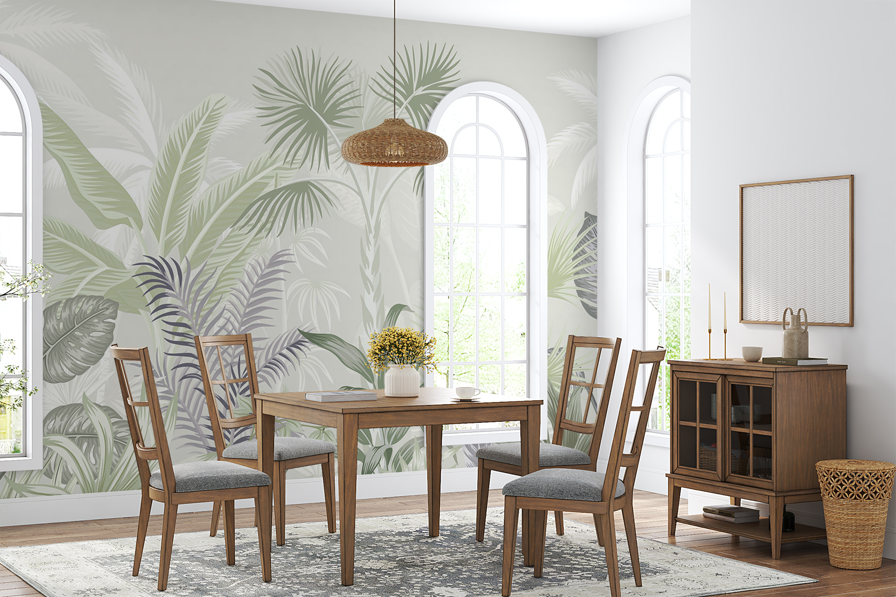 Perfekt für Ihr Wohnzimmer, Ihr Büro oder sogar eine gemütliche Leseecke. Diese Fototapete fügt sich mühelos in jeden Raum ein und verleiht ihm einen Hauch von naturinspirierter Eleganz. Stellen Sie sich vor, wie Sie sich nach einem langen Tag in dieser ruhigen Kulisse entspannen und vielleicht sogar Ihre Pflanzen ein wenig eifersüchtig machen, weil sie so naturgetreu aussehen!