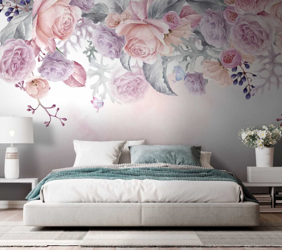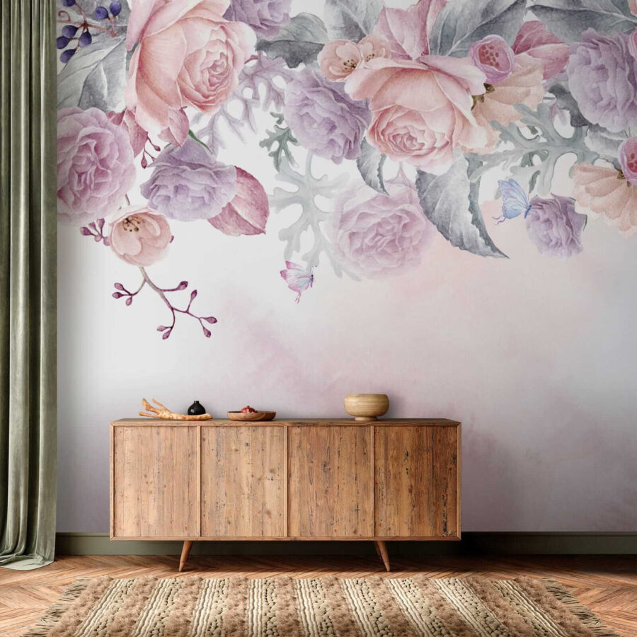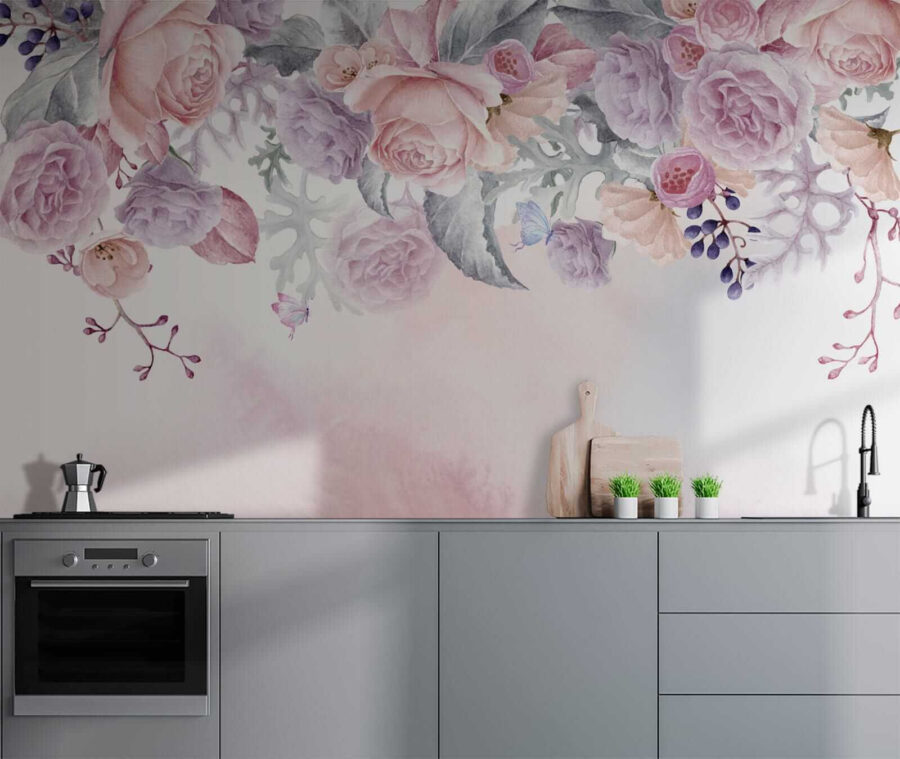 1 Rezension für Fototapeten Errötende Blumen mit zarten Schmetterlingen