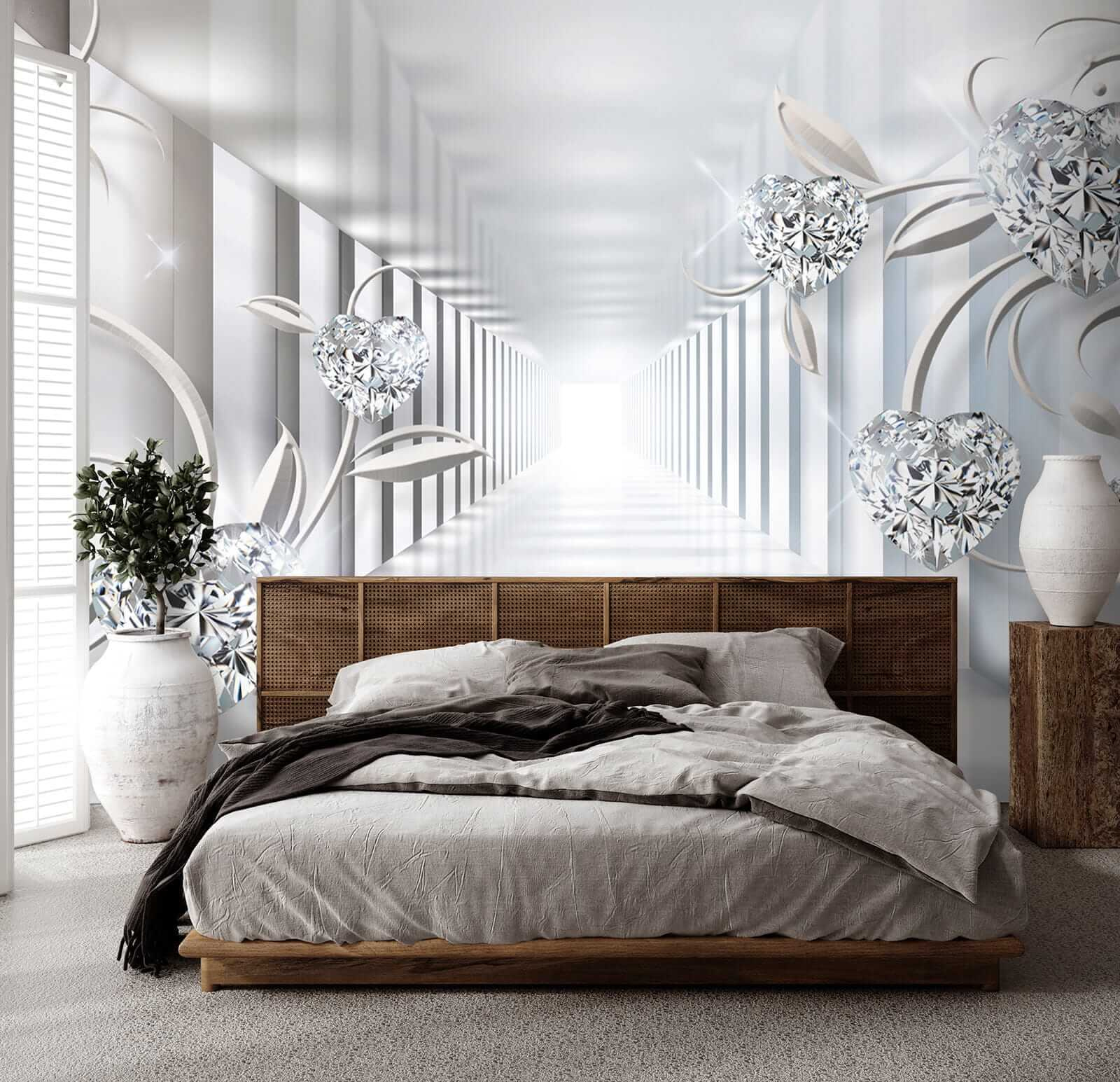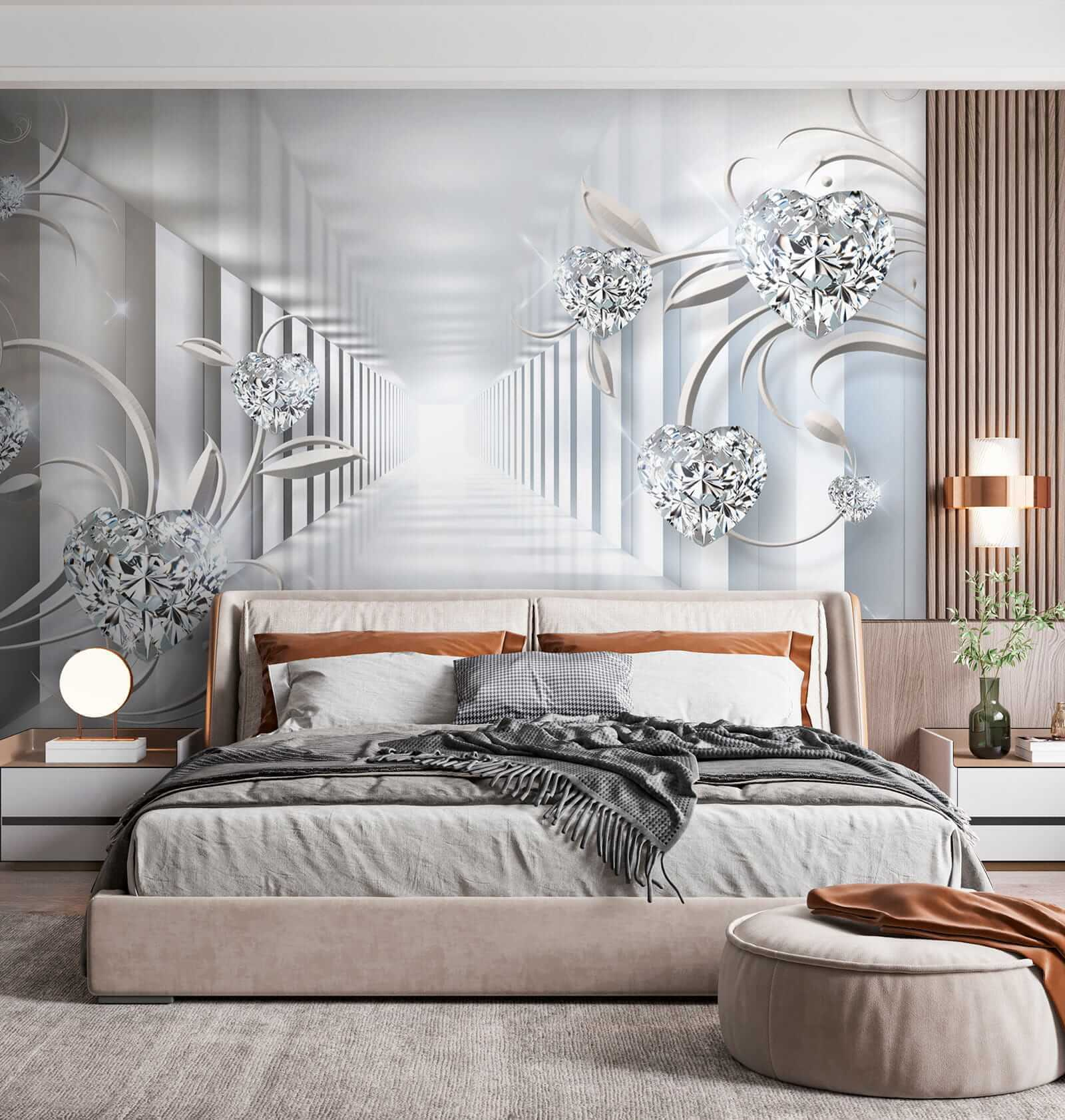 Verwandeln Sie jeden Raum in eine verträumte Oase mit der Fototapete Diamond in the Shape of a Heart. Dieses Wandbild bringt einen Hauch von Laune und Romantik mit sich und eignet sich perfekt für Schlafzimmer, Wohnzimmer oder jeden anderen Raum, der einen Hauch von Kreativität gebrauchen kann. Stellen Sie sich vor, Sie betreten den Raum und werden von diesen atemberaubenden Herzformen begrüßt, die zwischen zarten Ranken tanzen. Es ist, als ob die Wände Sie warm umarmen würden. Der 3D-Effekt zieht den Betrachter in seinen Bann und schafft ein Gefühl der Tiefe, das dazu einlädt, diese magische Welt zu erkunden. Perfekt für Leute, die ein bisschen Flair schätzen und es trotzdem gemütlich haben wollen. Eine wunderbare Wahl für alle, die ihrem Raum eine ganz eigene Note geben wollen.