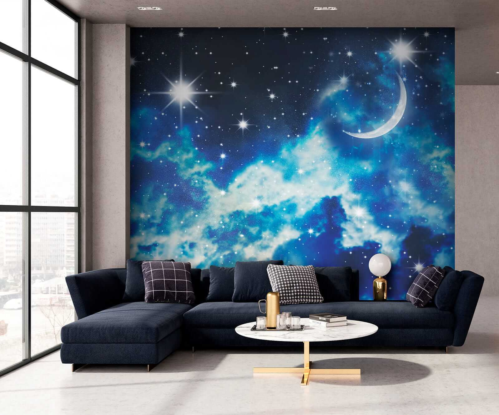 Verwandeln Sie einen Raum in einen verträumten Zufluchtsort mit den “Fototapeten Bright Light in the Sky”. Stellen Sie sich das vor – sanfte Blautöne und zartes Weiß wirbeln wie Wolken an einem ruhigen Abendhimmel, übersät mit funkelnden Sternen und einer heiteren Mondsichel. Es ist, als würde man den Kosmos ins Haus holen! Stellen Sie sich gemütliche Abende unter diesem Wandbild vor, an denen das Lesen einer Gute-Nacht-Geschichte wie ein Sternenabenteuer wirkt. Kinder werden fasziniert sein, und selbst Erwachsene wünschen sich vielleicht, zwischen den Sternen zu schweben. Diese Fototapete ist nicht nur Dekoration, sondern eine Einladung zum Träumen und zur Vorstellung von Abenteuern, die jenseits des Horizonts warten. Es eignet sich perfekt für ein Spielzimmer oder ein Kinderzimmer und erhellt den Raum mit einem Sinn für Wunder und unendliche Möglichkeiten.