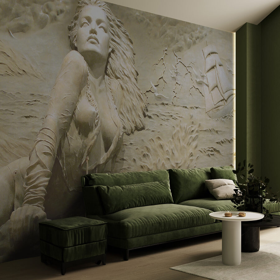 Haben Sie sich jemals vorgestellt, ein Meisterwerk direkt an Ihrer Wand zu haben? Diese Fototapete mit einer statuenhaften Frau ist zum Verlieben schön – fast wie eine Szene aus einem epischen Abenteuer. Die filigranen Details sorgen für eine so dramatische Stimmung, dass Sie beim Vorbeigehen die salzige Meeresbrise spüren könnten. Perfekt für alle, die einen Hauch von klassischem Charme mit einem modernen Twist hinzufügen möchten.