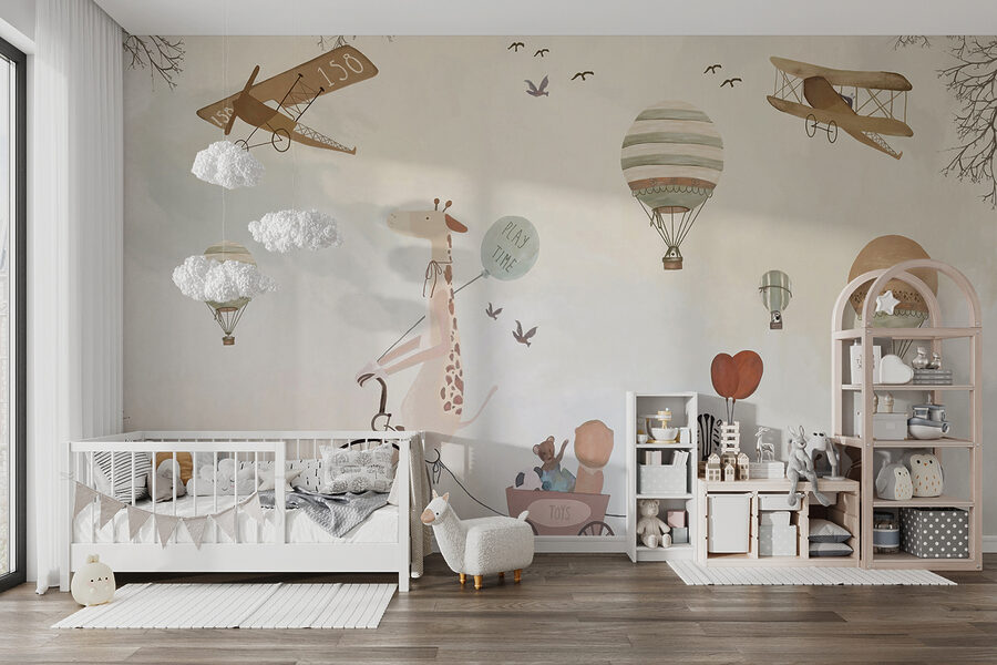 Jeder Blick wird die Fantasie anregen und die Kleinen in Tagträume entführen, in denen sie hoch über den Wolken schweben. Die warmen Farben schaffen eine gemütliche Atmosphäre, die sich perfekt für kuschelige Leseecken oder verspielte Spielbereiche eignet. Ob es sich um eine Geburtstagsfeier oder einen ruhigen Nachmittag handelt, dieses Wandbild verschönert jeden Raum und macht ihn noch ein bisschen magischer. Wer hätte gedacht, dass Dekorieren zu einem fröhlichen Abenteuer werden kann?