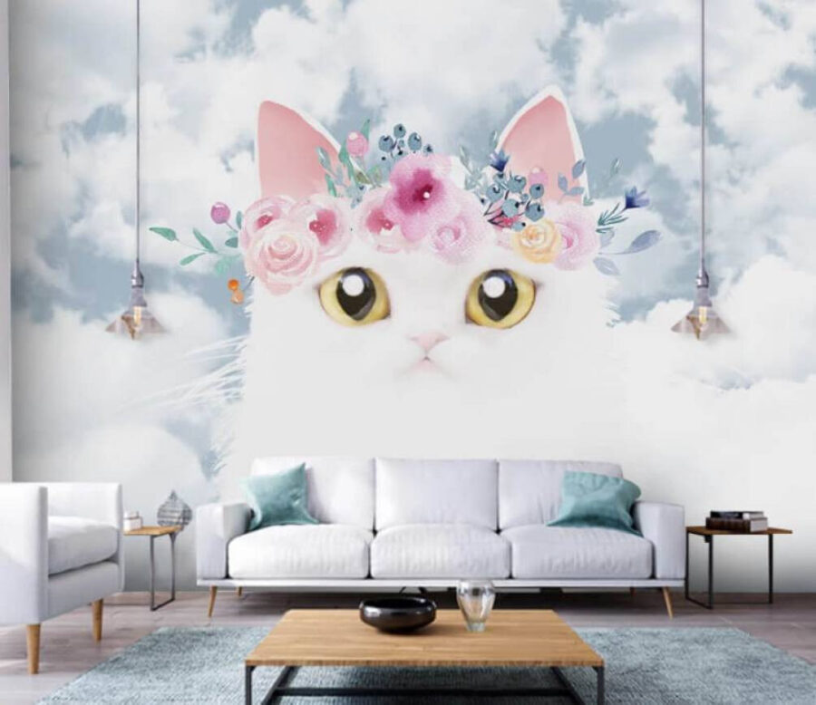 Stellen Sie sich vor, Sie wachen jeden Tag mit dieser verträumten Wandmalerei einer weißen Katze mit Blumenkrone auf – ein wahrer Lichtblick! Es ist, als würde Ihr pelziger Freund in den Wolken schweben, umgeben von sanften Blüten und einem endlosen Himmel. Perfekt für den Raum eines jeden Katzenliebhabers, denn es fühlt sich an, als hätten Sie ein kleines Stück Laune an Ihrer Wand. Mit den großen, bezaubernden Augen und der pastellfarbenen Blumenkrone bringt dieses Wandbild eine süße, friedliche Stimmung in jeden Raum. Ob im Schlafzimmer, im Wohnzimmer oder sogar in einer gemütlichen Leseecke, Sie werden immer lächeln, wenn Sie diese charmante Katze sehen, die über Sie wacht. Bist du bereit, ein bisschen Magie und Flausch in deine Wände zu streuen? Das ist pure Schnurren-Perfektion!