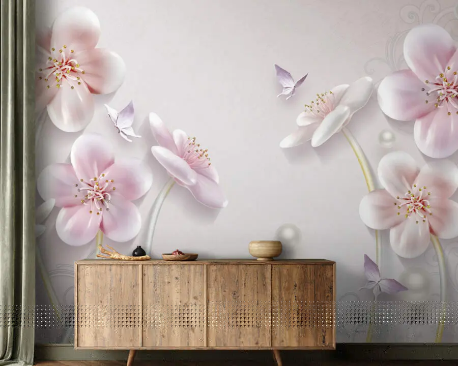 Verwandeln Sie Ihren Raum mit dieser bezaubernden Fototapete, die zarte Blumen und flatternde Schmetterlinge zeigt, in einen skurrilen Zufluchtsort. Stellen Sie sich vor, Sie betreten einen ruhigen Garten, in dem zarte Pastellblüten und verspielte Schmetterlinge durch den Raum tanzen. Diese Fototapete eignet sich perfekt für eine gemütliche Sitzecke oder ein lebhaftes Spielzimmer. Sie verleiht dem Raum einen sanften Hauch von Natur und lässt jeden Blick wie einen Hauch von frischer Luft erscheinen. Es ist, als hätte man das ganze Jahr über ein kleines Stückchen Frühling an der Wand. Erwarten Sie Komplimente von Ihren Freunden, die Sie vielleicht sogar fragen, ob Sie insgeheim ein Künstler geworden sind! Warten Sie nur, bis sie sehen, wie es Ihren Raum erhellt.