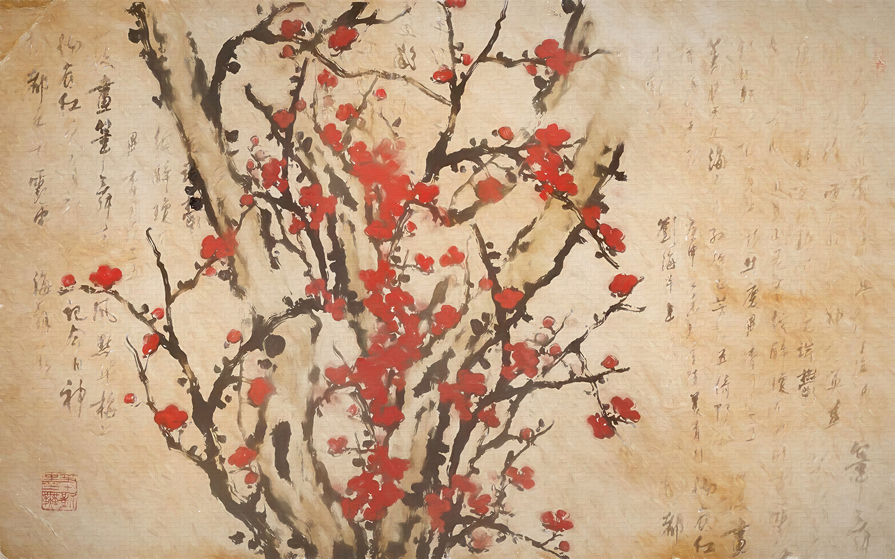 Transform any wall into a bright conversation starter with this stunning mural of a tree in full bloom, dressed in vibrant red flowers. It’s like bringing a piece of spring inside, no watering required! The delicate brushstrokes whisper stories, and the soft background beckons a warm, inviting atmosphere. Picture this: sipping tea, cozy on the couch, while this mural adds a touch of whimsy to your space. It’s not just decor; it sparks joy and imagination. Perfect for those who appreciate unique art that feels alive—like a gentle hug for your wall!