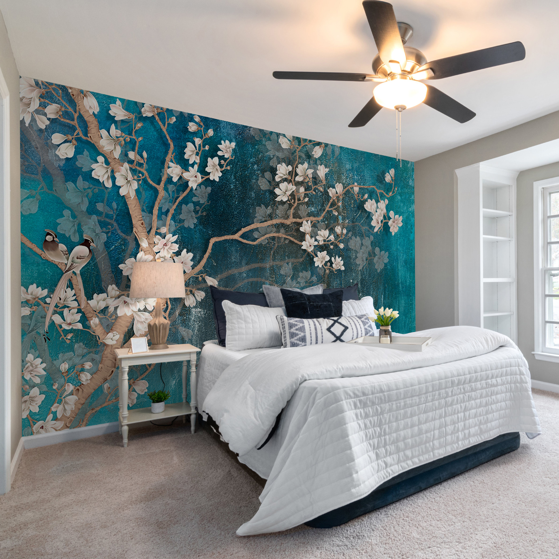 Haben Sie schon einmal davon geträumt, sich die Schönheit der Natur ins Haus zu holen? Diese Fototapete “Weiße Blume auf blauem Hintergrund” ist wie ein frischer Wind für Ihren Raum! Stellen Sie sich zarte weiße Blüten vor, die sich über einen verträumten blauen Hintergrund ergießen, auf dem anmutige Vögel hocken. Es ist, als hätten Sie Ihren eigenen geheimen Garten, nur ohne das Gießen!