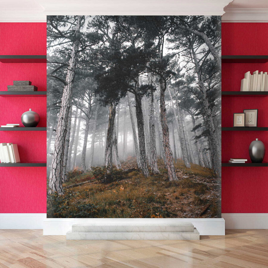 Stellen Sie sich vor, Sie betreten einen ruhigen Wald, in dem sich hohe Bäume erheben und der Nebel Geheimnisse der Natur flüstert. Dieses Wandbild „Wald mit Bäumen im Nebel“ verwandelt Ihren Raum in eine Oase der Ruhe. Es fängt diesen traumhaften Moment ein, in dem das Sonnenlicht durch den Nebel tanzt und sanfte Schatten und ein Gefühl des Staunens erzeugt. Stellen Sie sich vor, Sie machen es sich mit einem Buch gemütlich oder trinken einen Kaffee, während Sie diese friedliche Szene umgibt – es ist, als würden Sie die Natur ins Haus holen, ohne die Insekten! Perfekt für alle, die ihren Wänden einen Hauch von Ruhe und Geheimnis verleihen möchten. Warum also nicht Ihrer Fantasie zwischen diesen nebligen Bäumen freien Lauf lassen? Es ist ein Gesprächsaufhänger, eine Erinnerung daran, tief durchzuatmen, und ein kleines Stück Waldzauber, alles in einem!