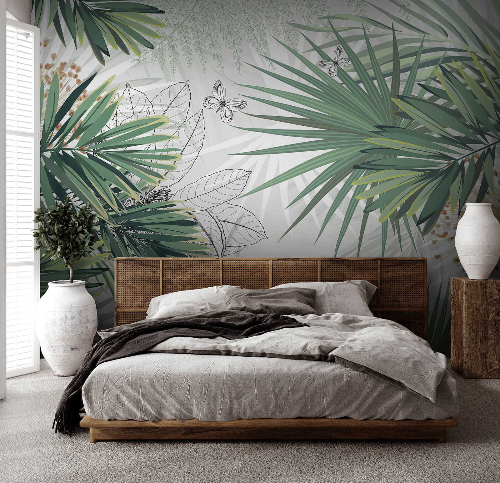 Stellen Sie sich vor, Sie betreten einen Raum und werden sofort in eine üppige tropische Oase versetzt – klingt ziemlich verträumt, oder? Dieses Wandbild “Tropical Leaves and Butterflies” macht genau das. Es ist, als hätten Sie ein Stück Dschungel direkt in Ihrem Zuhause, ohne die Feuchtigkeit oder lästige Insekten! Die Grüntöne und die zarten Schmetterlinge sorgen für einen Hauch von Natur, der jeden Raum frisch und lebendig erscheinen lässt. Perfekt für eine Auffrischung des Wohnzimmers oder Ihr ganz persönliches Refugium. Vielleicht lesen Sie gerade ein Buch, trinken einen Kaffee… Plötzlich sind Sie in Ihrem Mini-Dschungel. Es ist eines dieser Stücke, die jeden Tag ein bisschen besonderer machen. Also los, verschönern Sie Ihre Wände!