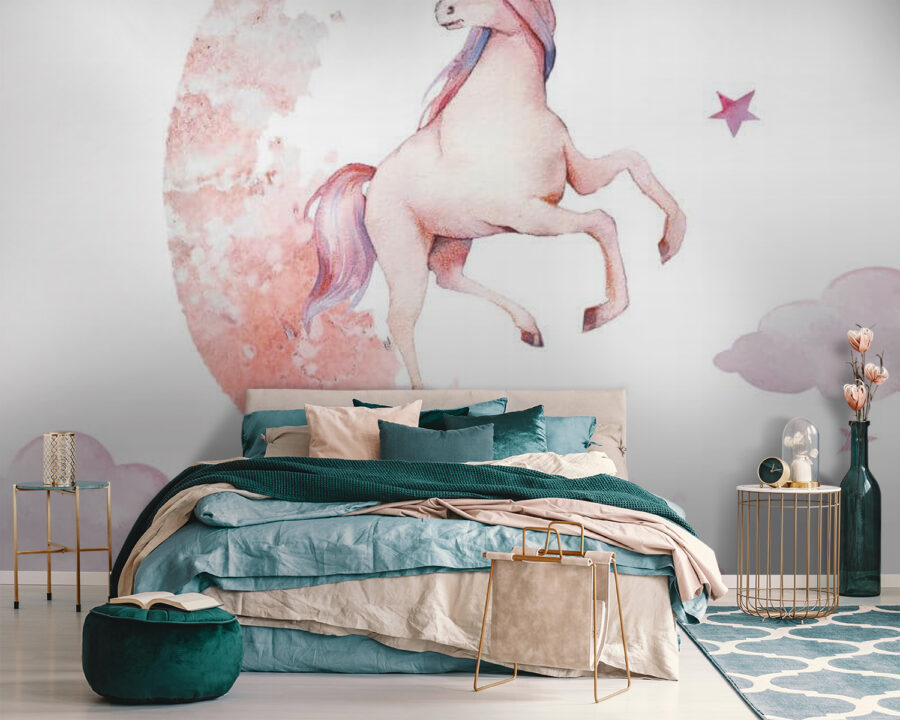 Verwandeln Sie jeden Raum mit dieser skurrilen Fototapete, die ein Einhorn zeigt, das elegant über den Mond hüpft. Es eignet sich perfekt für Kinderzimmer oder alle, die ein Faible für Magie haben, und verleiht den Wänden einen Hauch von Wunder. Stellen Sie sich gemütliche Abende vor, an denen Sie Bettgeschichten lesen und die sanfte Präsenz des Einhorns Träume von verwunschenen Ländern und sanften Wolken inspiriert. Die verspielten Rosatöne und die verträumten nächtlichen Schwingungen werden mit Sicherheit Freude auslösen. Wer möchte nicht ein bisschen Magie in seinem Zuhause haben? Es ist, als hätte man ein Stück Märchen direkt vor sich, das nur darauf wartet, zu Abenteuern zu inspirieren!