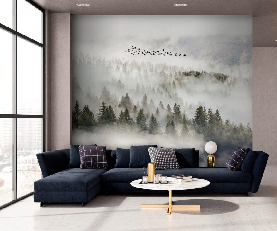 Stellen Sie sich vor, wie die Fototapete “Flock of Birds Flying in the Sky” Ihren Raum in einen ruhigen Zufluchtsort verwandelt. Sie können fast das leise Rascheln der Blätter hören und die kühle, neblige Luft auf Ihrer Haut spüren. Und die Vögel über Ihnen? Pure Freiheit. Dieses Wandbild fängt die Ruhe der Natur und die ungezähmte Schönheit der freien Natur perfekt ein – es ist, als würde man den Wald direkt in sein Zimmer holen. Es ist nicht nur Dekoration, sondern ein täglicher Hauch von frischer Luft. Perfekt für alle, die einen Hauch von Wildnis in ihr Zuhause bringen wollen. Verleihen Sie Ihren Wänden Charakter und lassen Sie sie eine Geschichte erzählen! Perfekt für Tagträumer und Naturliebhaber gleichermaßen.