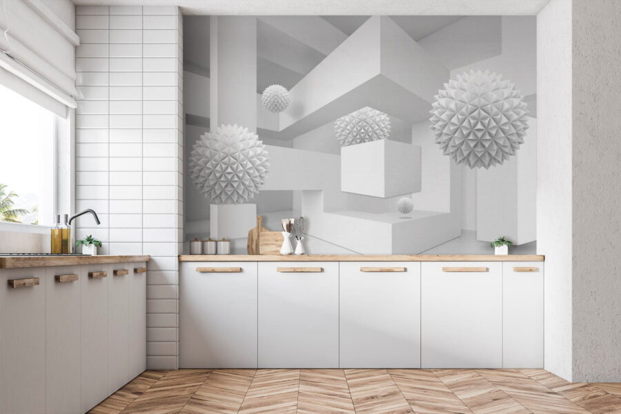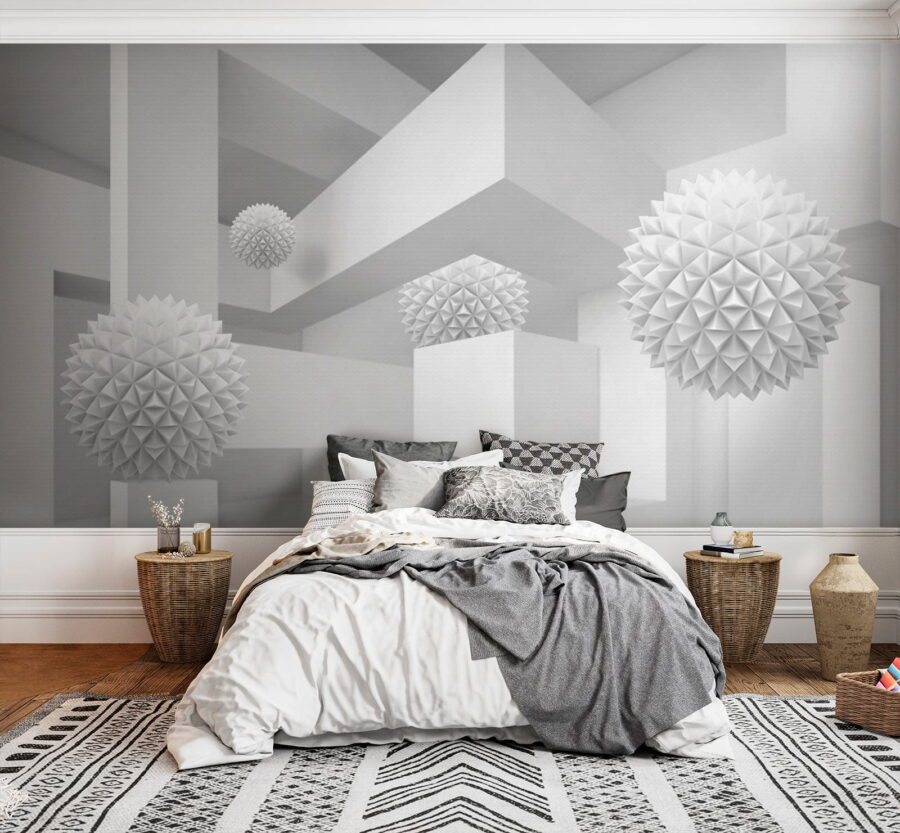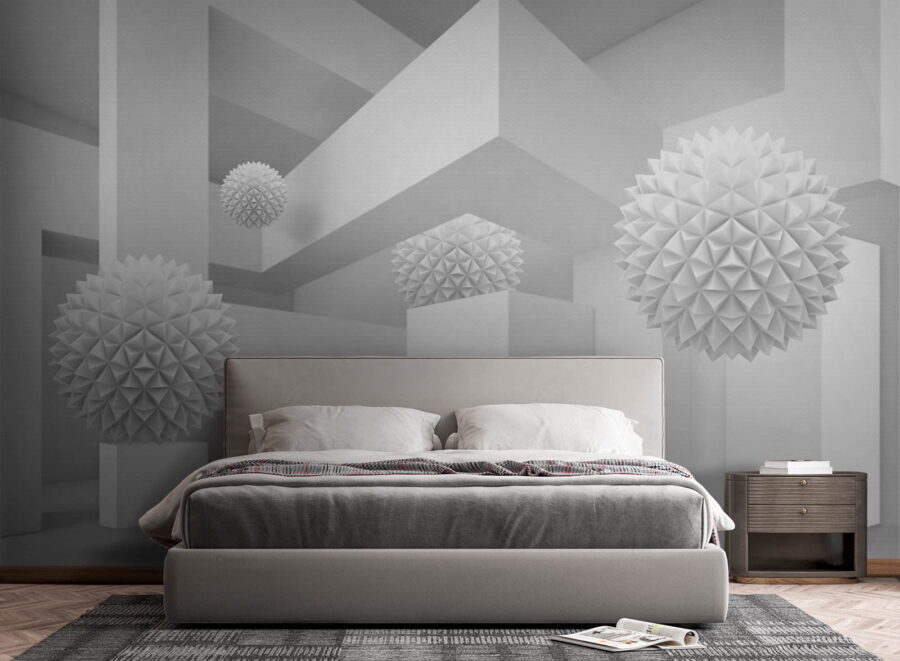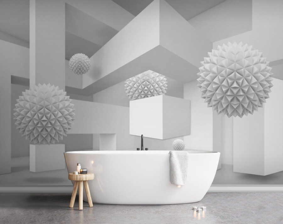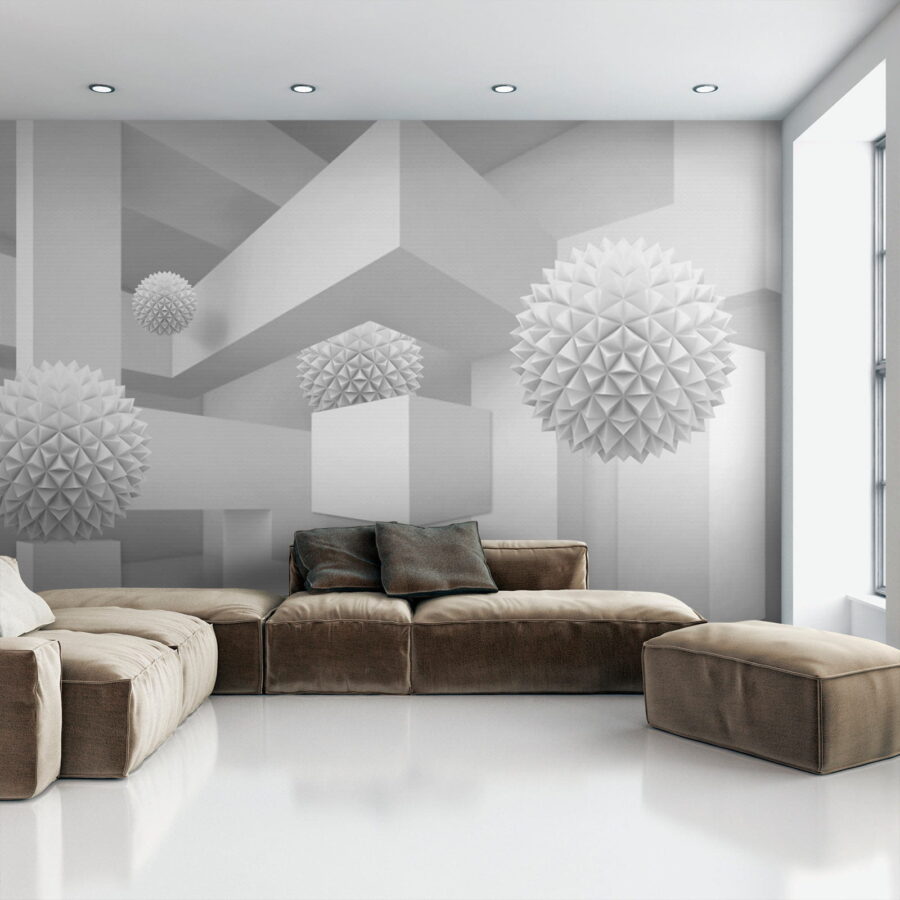Stellen Sie sich vor, Sie betreten einen ruhigen, verträumten Raum, in dem die Farbe Weiß der Star der Show ist. Dieses Wandbild, das einen sauberen, hellen Raum voller skurriler, dreidimensionaler Kugeln zeigt, wirkt wie ein skurriles Abenteuer der Einfachheit. Die verspielten Formen heben sich vor dem Hintergrund ab und laden zu neugierigen Blicken und einem sanften Lächeln ein. Perfekt für ein modernes Wohnzimmer oder eine kreative Ecke, verwandelt es jede Wand in einen Gesprächsanlass. Stellen Sie sich vor, Sie laden Freunde ein, deren Augen verwundert aufleuchten und deren Lachen übersprudelt, wenn sie versuchen, die Geschichte hinter diesen schwebenden Formen zu entschlüsseln. Es ist nicht nur ein Wandbild, es ist ein Erlebnis, das auf sich warten lässt.