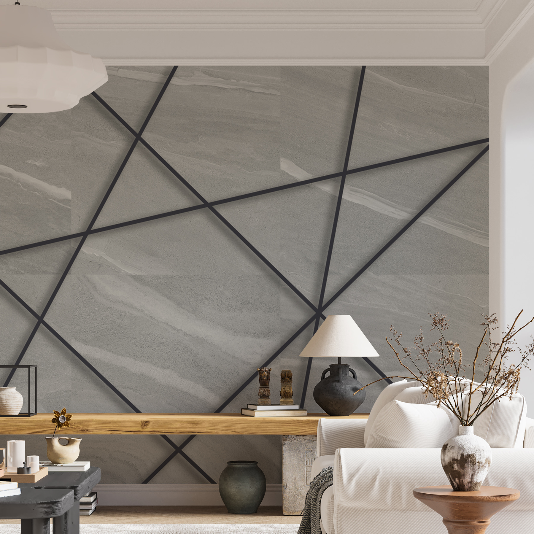 Verändern Sie jeden Raum mit dieser atemberaubenden Fototapete mit einem geometrischen Muster aus sich kreuzenden Linien. Es ist, als ob Sie ein Stück moderner Kunst direkt in Ihren Wohnraum bringen. Stellen Sie sich vor, Sie betreten einen Raum und spüren sofort einen Anflug von Kreativität – die Art von Energie, die von einer gemütlichen Leseecke bis zu einem schicken Arbeitsbereich alles inspirieren kann.