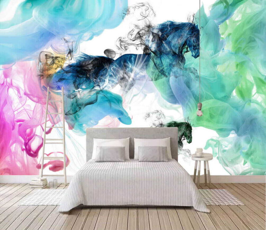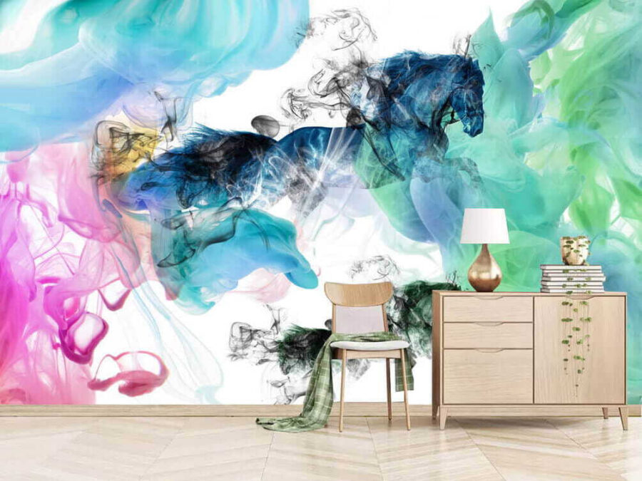 Verwandeln Sie jeden Raum mit dieser fesselnden Fototapete mit Pferden, die durch bunte Rauchwolken tanzen. Es ist wie ein wilder Tagtraum, in dem Kunst und Fantasie aufeinanderprallen. Die lebhaften Farbtöne – Blau vermischt sich mit verspieltem Rosa – bringen Energie und Charme und sorgen für Gesprächsstoff. Stellen Sie es sich in einer gemütlichen Leseecke oder an einer auffälligen Wand vor. Vielleicht inspiriert es zu einer spontanen Tanzparty oder zu ruhigen Abenden mit einem Buch und einer Tasse Tee. Mit jedem Blick werden Sie sich ein bisschen lebendiger fühlen, wie ein Hauch frischer Luft in Ihrem Zuhause. Und wer liebt es nicht, wenn ein Pferd durch eine bunte Wolke galoppiert? Das ist eine tolle Stimmung!