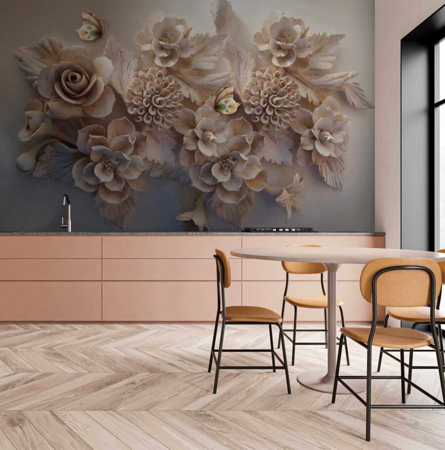 1 Rezension für Fototapeten Elegante Blumen mit anmutigen Schmetterlingen