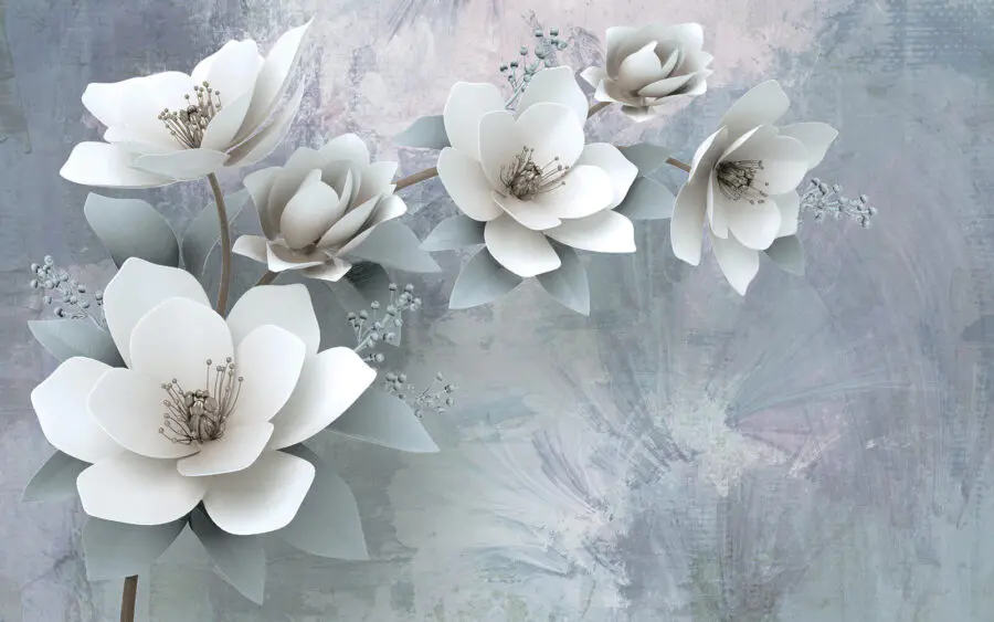 Fototapeten Elegante weiße Blumen auf strukturiertem Hintergrund Fototapeten Elegante weiße Blumen auf strukturiertem Hintergrund