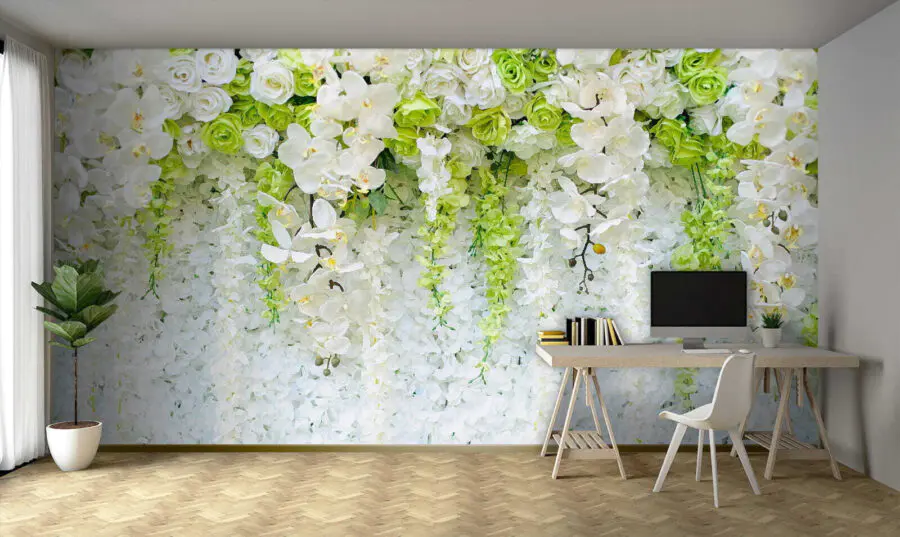 Stellen Sie sich vor, Sie betreten einen Raum und werden von einer atemberaubenden Kaskade weißer und grüner Blumen begrüßt, die Ihre Wand schmücken. Dieses Wandbild “Gruppe weißer und grüner Blumen” ist so, als würde man einen ruhigen Garten betreten, ohne sein Haus zu verlassen. Der Detailreichtum ist beeindruckend – fast könnte man die Blütenblätter berühren. Es ist perfekt, um jedem Raum einen sanften, natürlichen Touch zu verleihen.