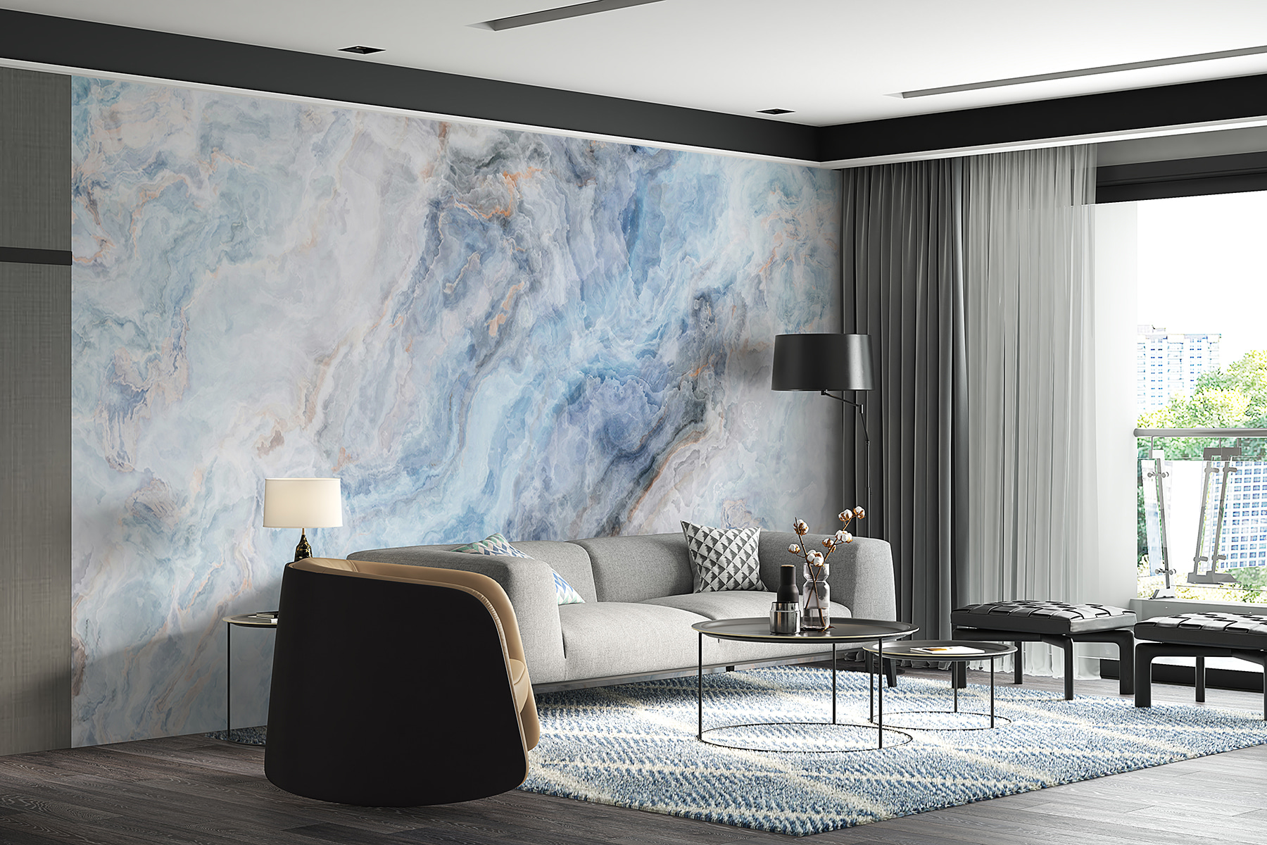 Stellen Sie sich vor, Sie betreten einen Raum und haben sofort das Gefühl, auf einer Wolke zu schweben – genau das ist es, was “Blue and White Marble Texture Pattern” bewirkt! Dieses Wandbild ist nicht nur ein hübsches Gesicht; es verwandelt jeden Raum in eine heitere Oase. Es hat diese sanften, wirbelnden Blau- und Weißtöne, die aussehen, als hätte Mutter Natur selbst den Pinsel in die Hand genommen und Ihre Wand bemalt.