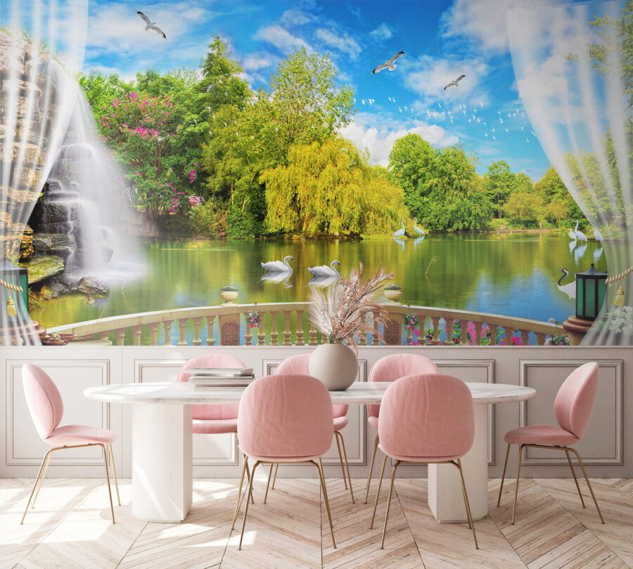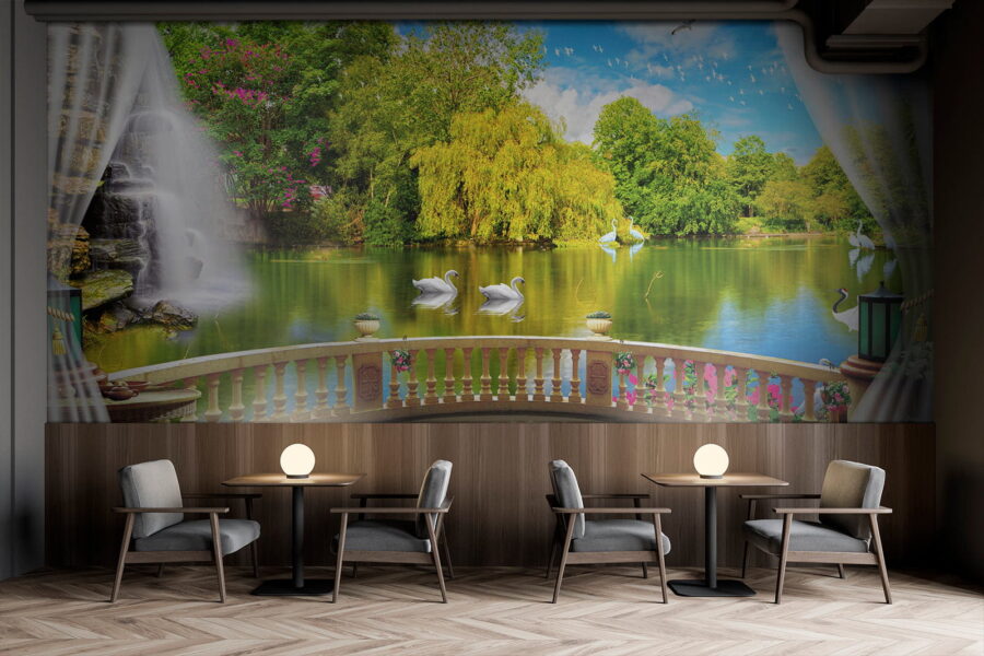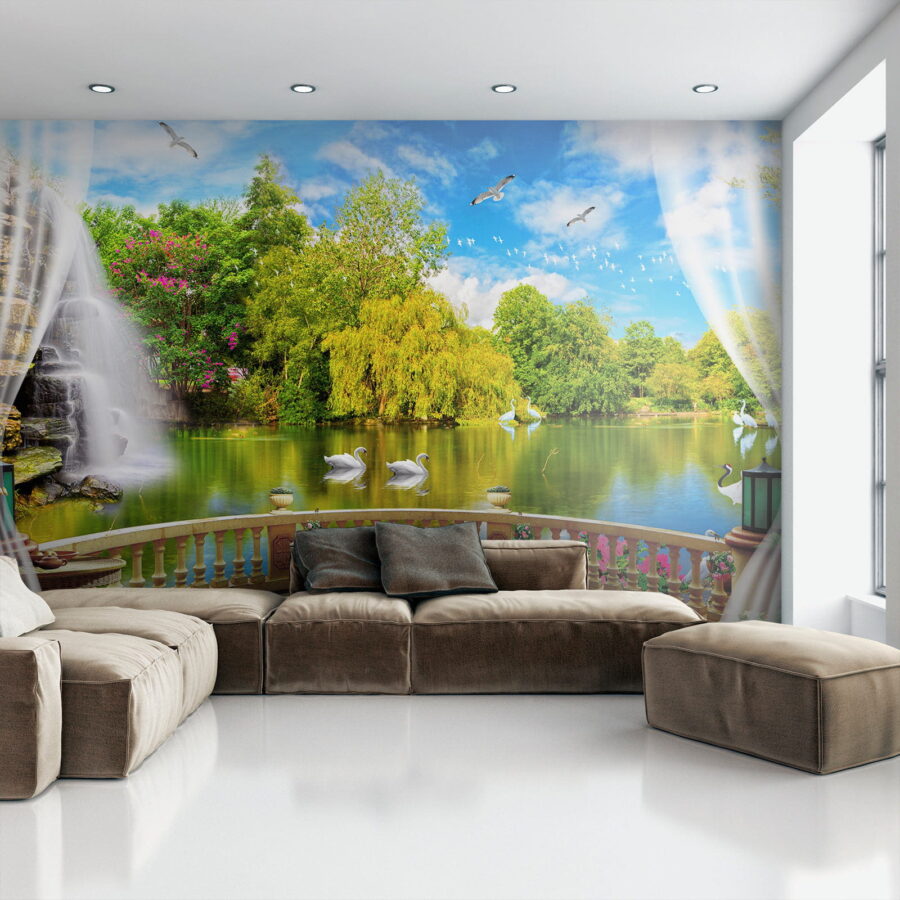 Verwandeln Sie jeden Raum in eine Oase der Ruhe mit diesem bezaubernden Wandbild „Blick auf einen Teich mit Vögeln und Bäumen“. Stellen Sie sich vor, Sie trinken Ihren Morgenkaffee und plötzlich verblasst das Chaos der Welt – nur Sie, das ruhige Wasser und anmutige Schwäne, die vorbeigleiten. Die leuchtenden Grüntöne und lebhaften Blautöne bringen die Natur direkt an Ihre Wände und lassen jeden Tag wie einen gemütlichen Spaziergang am Wasser erscheinen. Diese Wandtapete eignet sich perfekt für eine gemütliche Ecke oder ein lebhaftes Wohnzimmer und ist nicht nur Dekoration, sondern ein kleines Stückchen Ruhe, das Ihnen zuflüstert: „Atmen Sie tief durch, Sie haben es sich verdient.“ Ist es nicht an der Zeit, diese beruhigende Atmosphäre zu genießen?