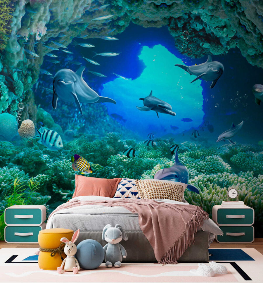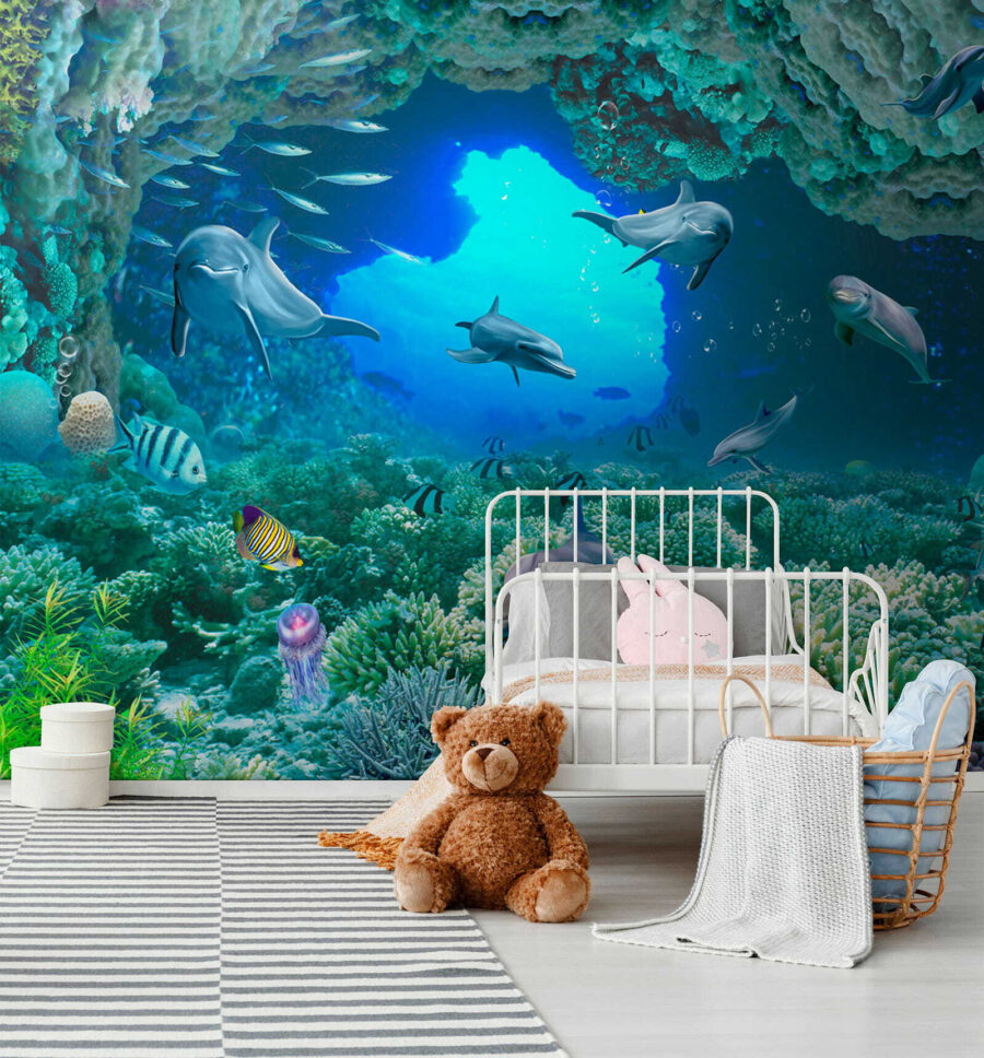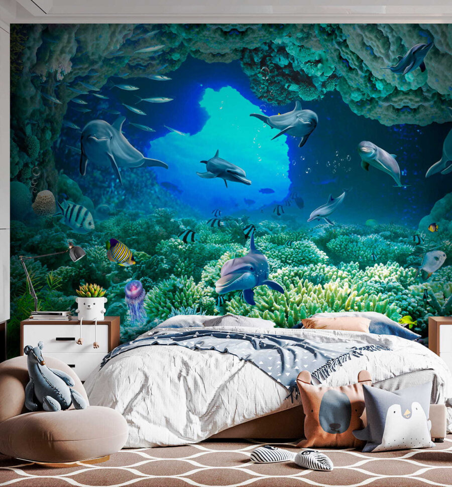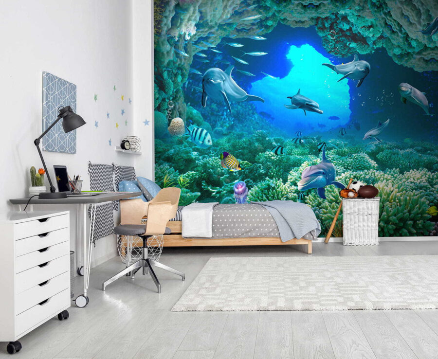 Tauchen Sie direkt in die Magie des tiefen Blaus ein mit dieser atemberaubenden Fototapete “Dolphin Swimming in the Water”! Stellen Sie sich vor, Sie wachen in dieser lebendigen Unterwasserwelt auf, direkt in Ihrem Wohn- oder Schlafzimmer. Die Delfine sehen so fröhlich und verspielt aus, als ob sie Sie einladen würden, sich ihnen anzuschließen! Die leuchtenden Farben und die filigranen Details der Korallen und Fische geben Ihnen das Gefühl, in tropischen Gewässern zu schnorcheln… ohne Ihr Haus zu verlassen. Im Ernst, das ist ein One-Way-Ticket für Meeresstimmung, und wer braucht nicht ein bisschen mehr davon?! Sowohl Kinder als auch Erwachsene werden die ruhige und doch abenteuerliche Energie dieses Wandbildes lieben – es ist wie ein Aquarium, nur ohne den Wartungsaufwand. Perfekt für jeden Raum, der einen Spritzer Leben und eine Prise Laune braucht – stellen Sie es auf und machen Sie sich bereit, jeden Tag aufs Neue begeistert zu sein!