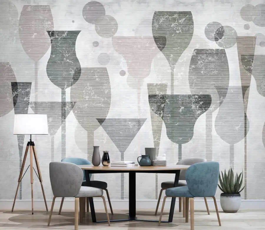 Stellen Sie sich vor: Sie schlürfen Ihren Morgenkaffee, die subtile Geometrie spielt mit dem Morgenlicht – es sieht fast so aus, als würden die Gläser klirren… Es ist eine Wandmalerei, die den Raum nicht nur schmückt, sondern ihn in eine Kunstgalerie verwandelt. Und glauben Sie mir, es ist ein viel besserer Gesprächsanlass als ein Gespräch über das Wetter. Dieses Wandbild ist für Leute, die ihre Inneneinrichtung mit einem Hauch von Unerwartetem, einem Spritzer Klasse und einem Hauch von Geheimnissen versehen möchten. Perfekt für alle, die der Meinung sind, dass Wände mehr können sollten als nur ein Dach zu halten.